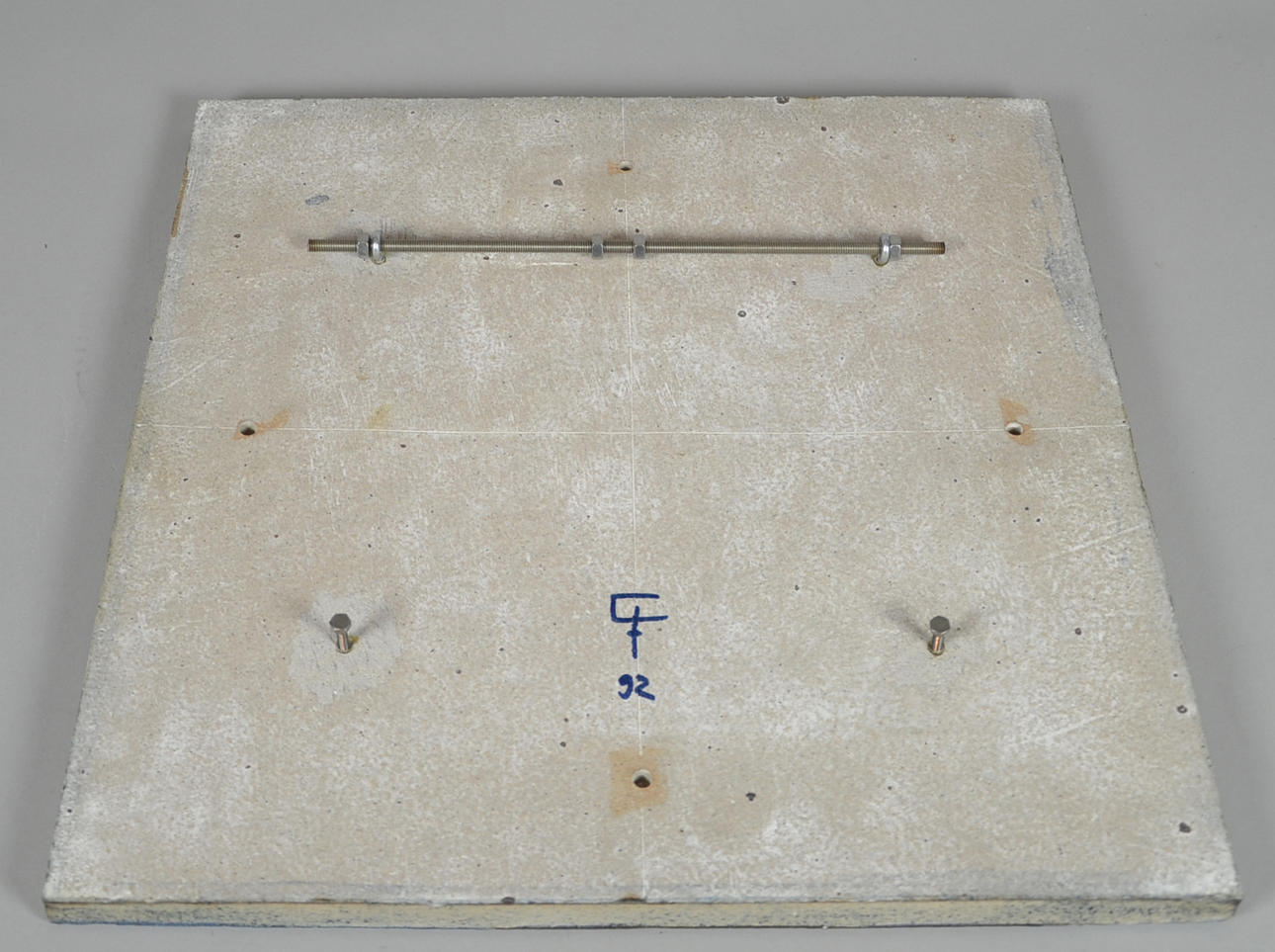 stengods. Signerad. 39 x 39 cm, h. 2 cm.