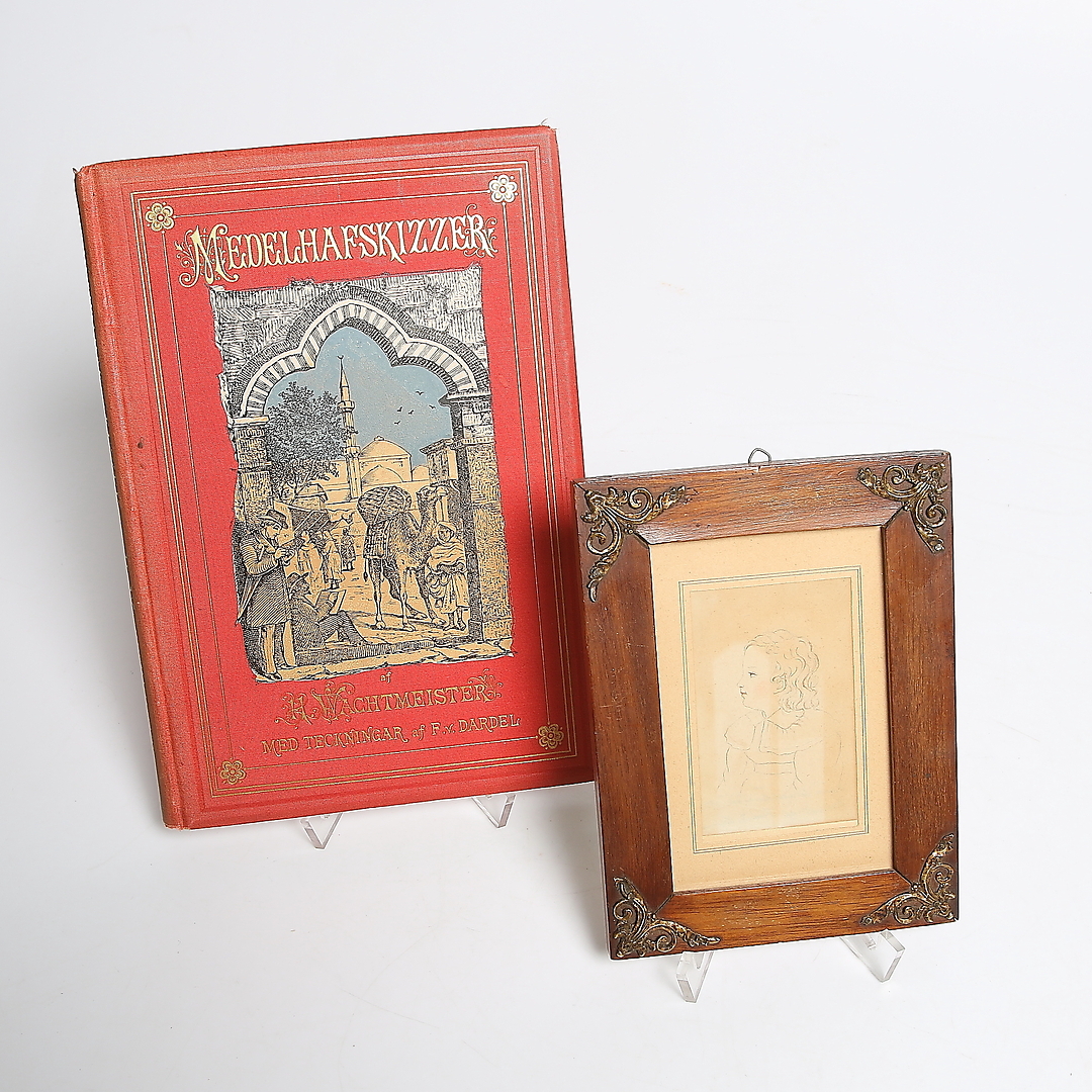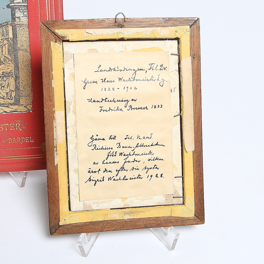 242913. FREDRIKA BREMER. Blyertsteckning, daterad 1833, samt BOK.