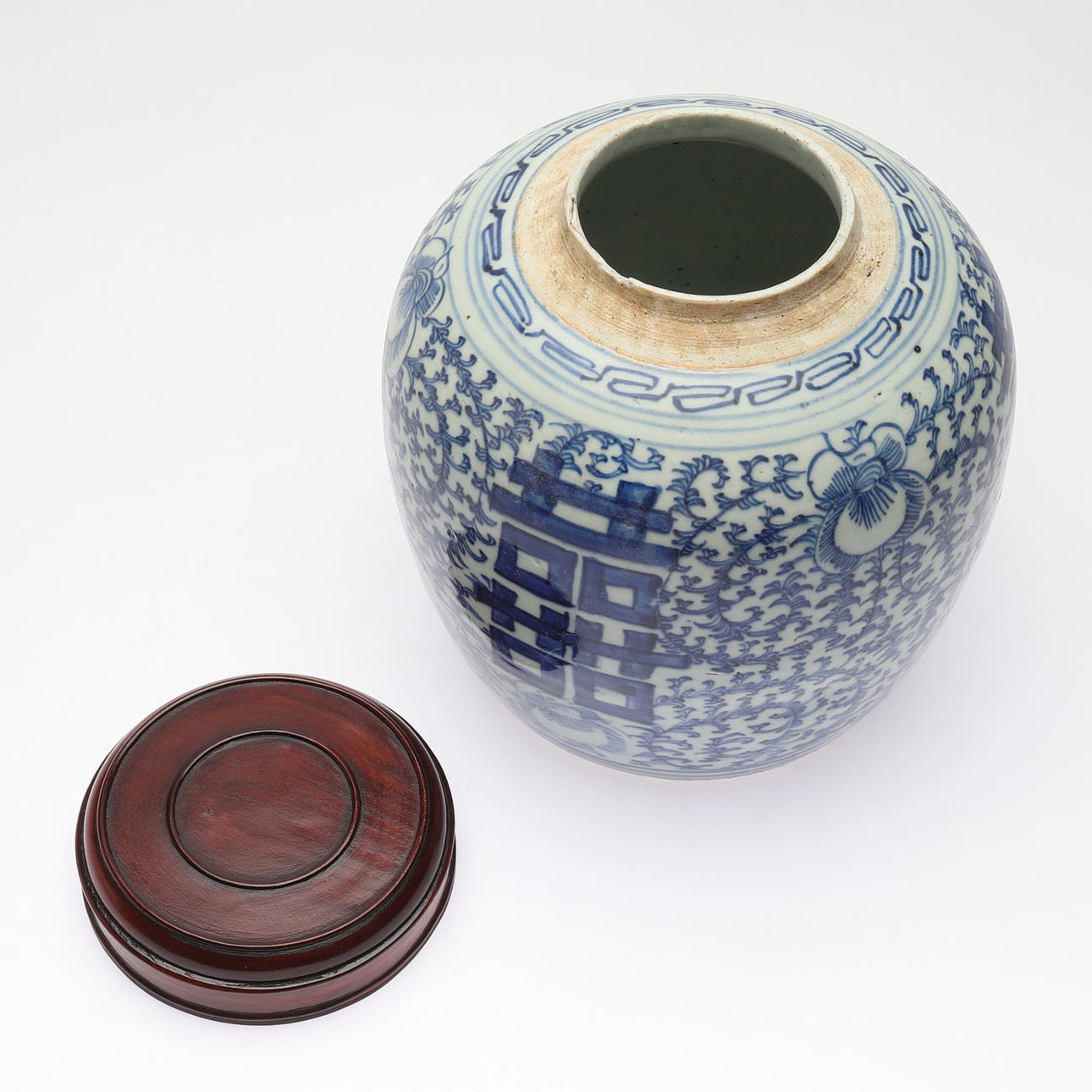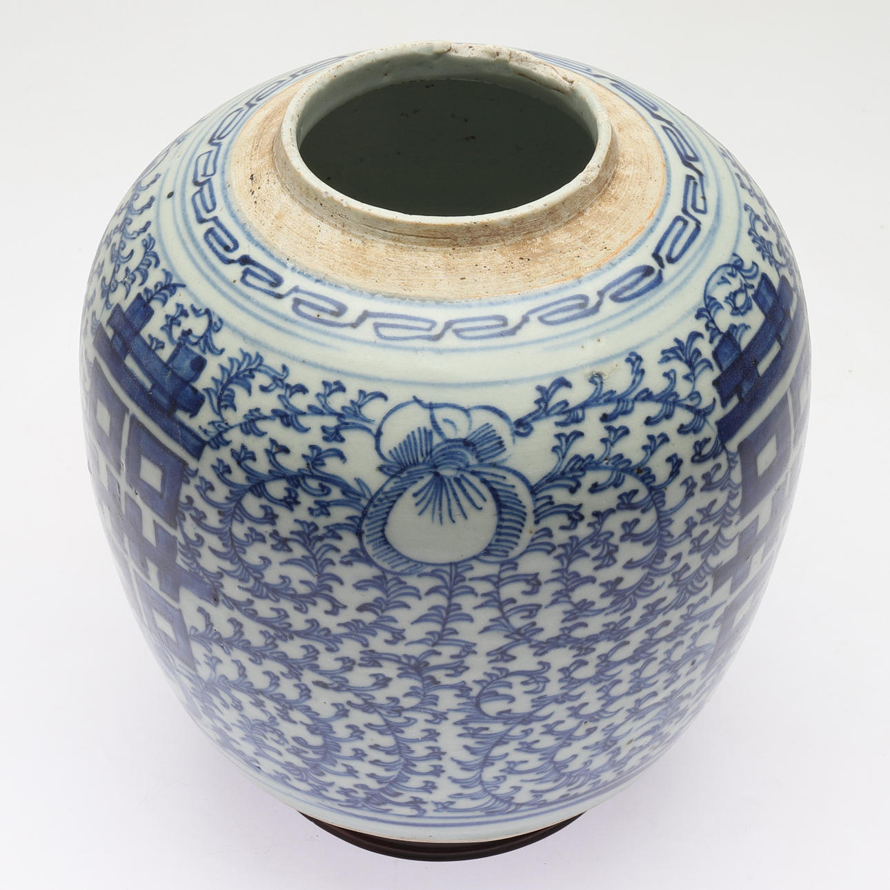 Blå och vit dekor. Diameter ca 19 cm. Höjd ca 22 cm.