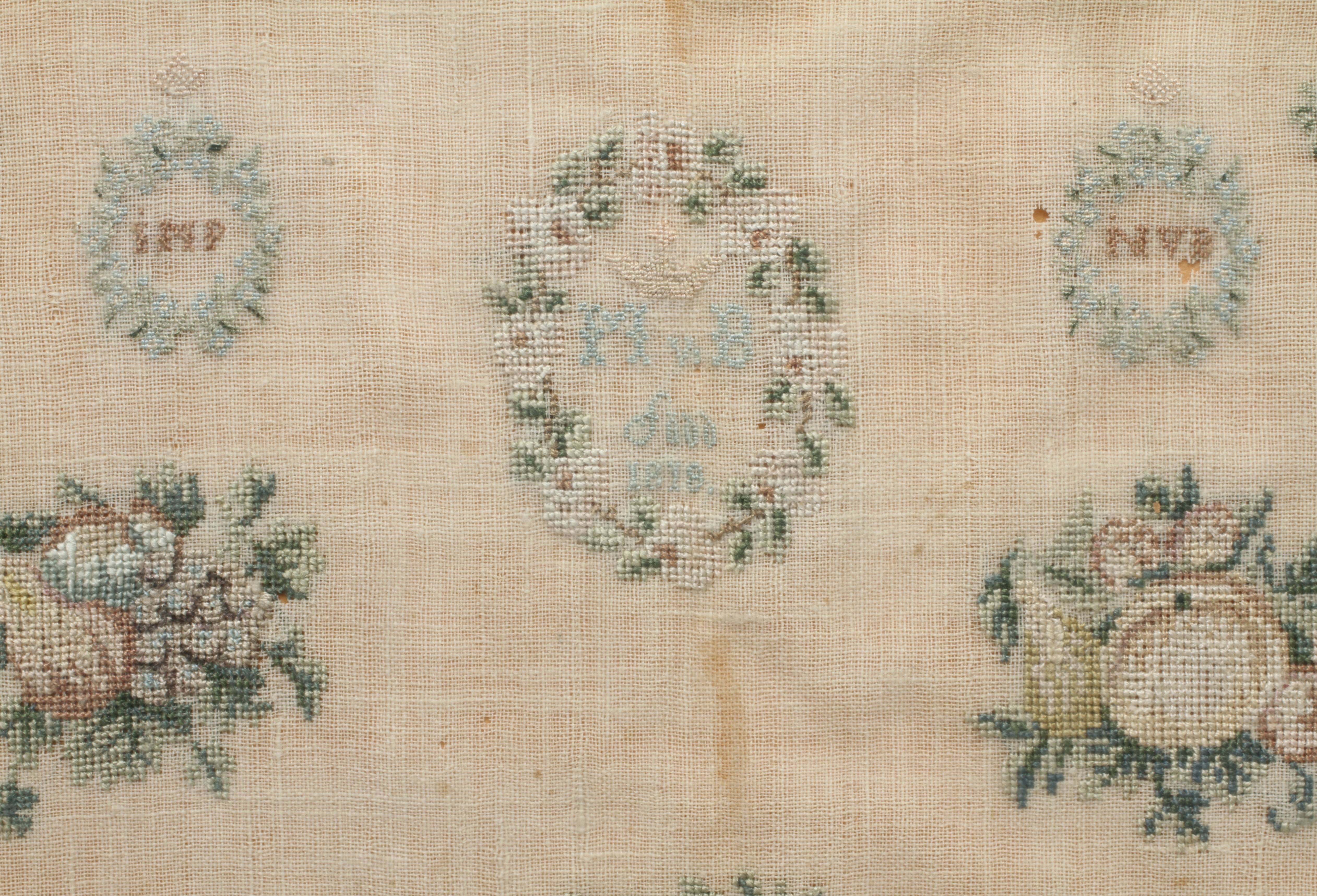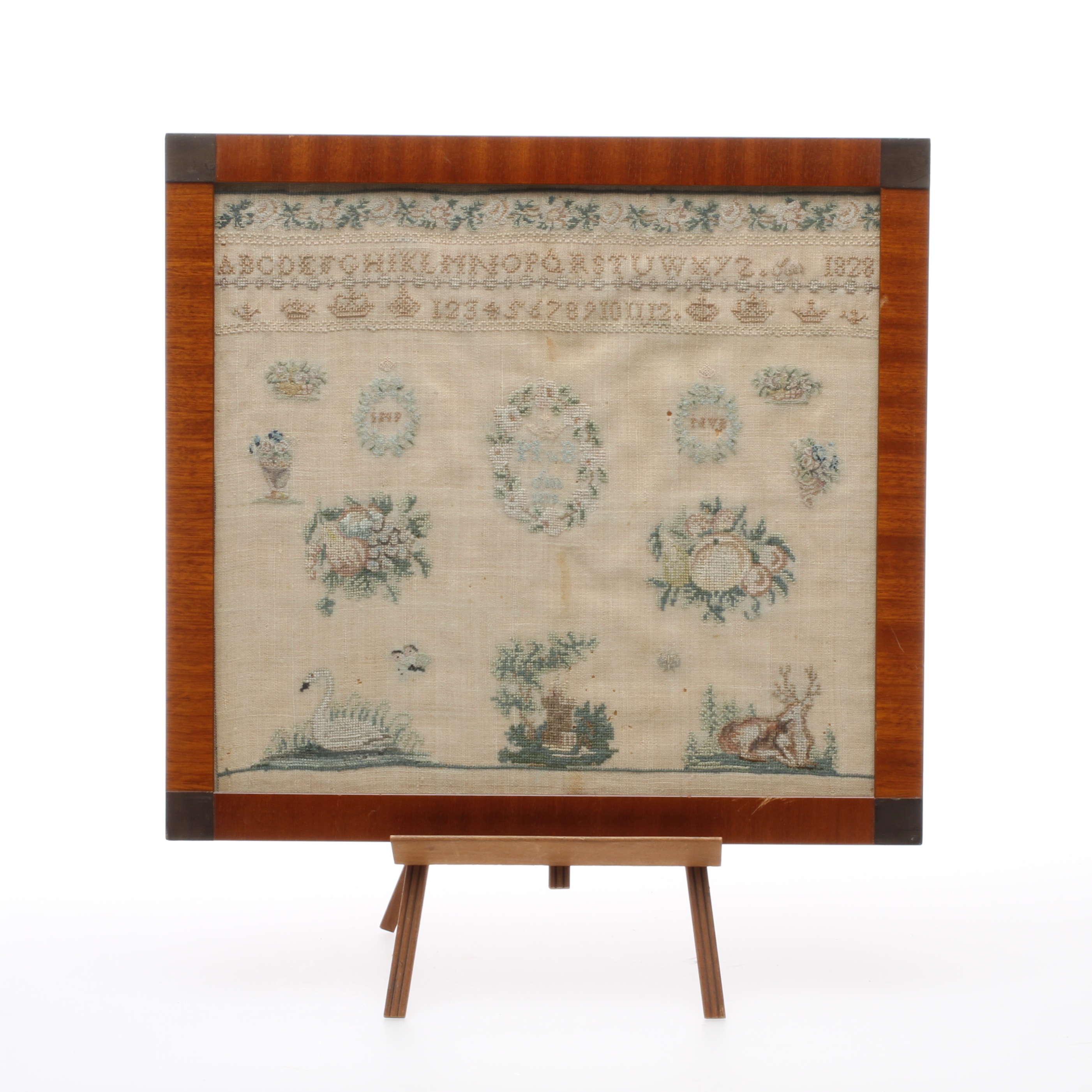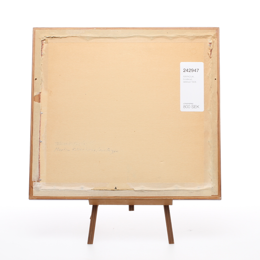 242947. MÄRKDUK, broderad, daterad 1828.