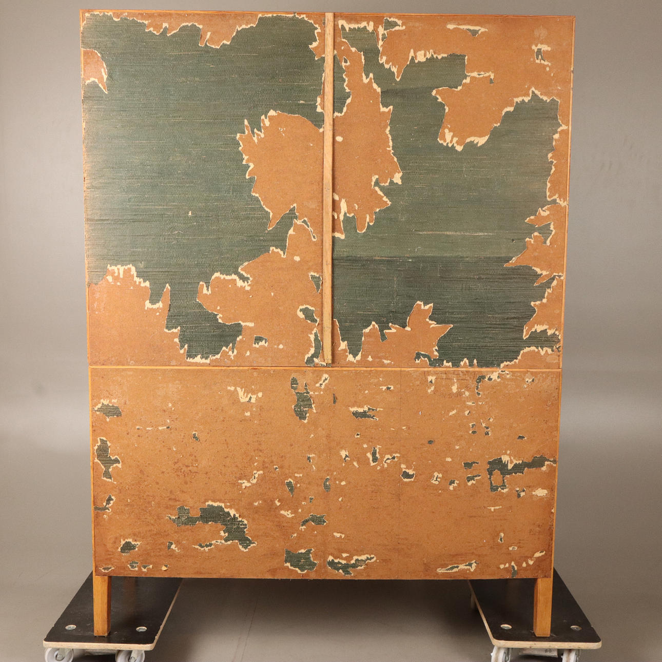 Bruksslitage, märke, repor, masonitskiva på baksida med tapetrester.