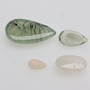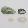 GLI-certifierade Regnbågsmånsten, oval cabochonslipad, 10ct Opal, päronslipad, 0,80ct Ametist, grön, konkav päronslipad, 7,0ct Prehnit, päronslipad cabochon, 29,350ct.