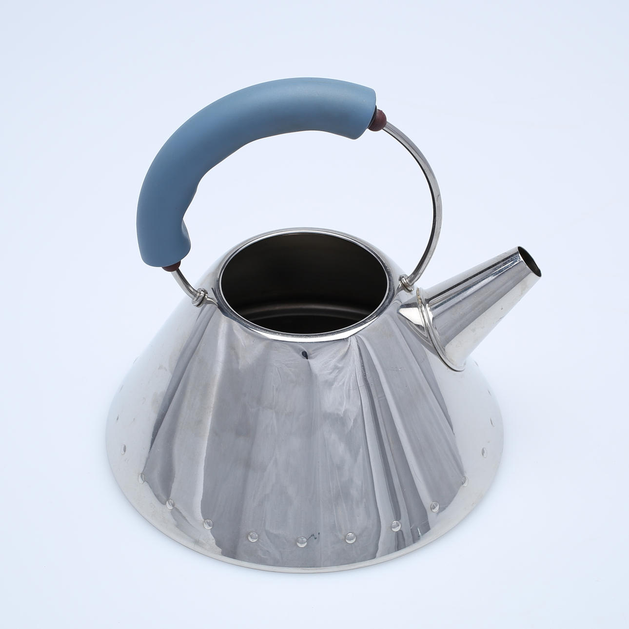 Vitmetall samt dekordelar i plast. Höjd 24 cm.