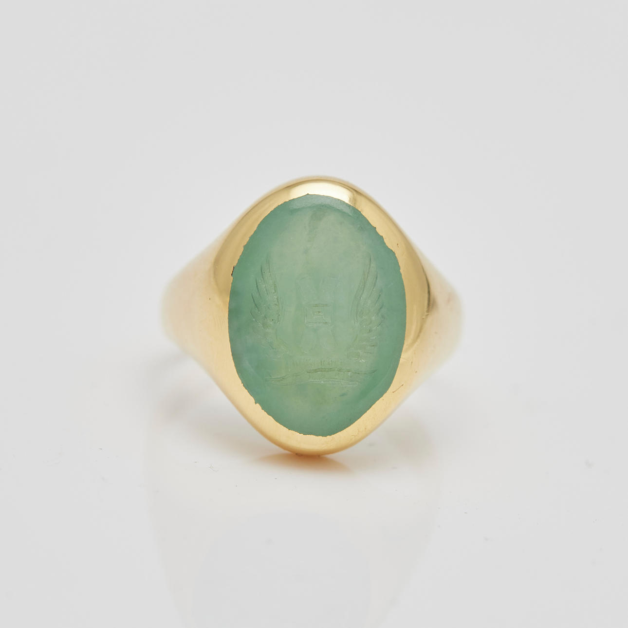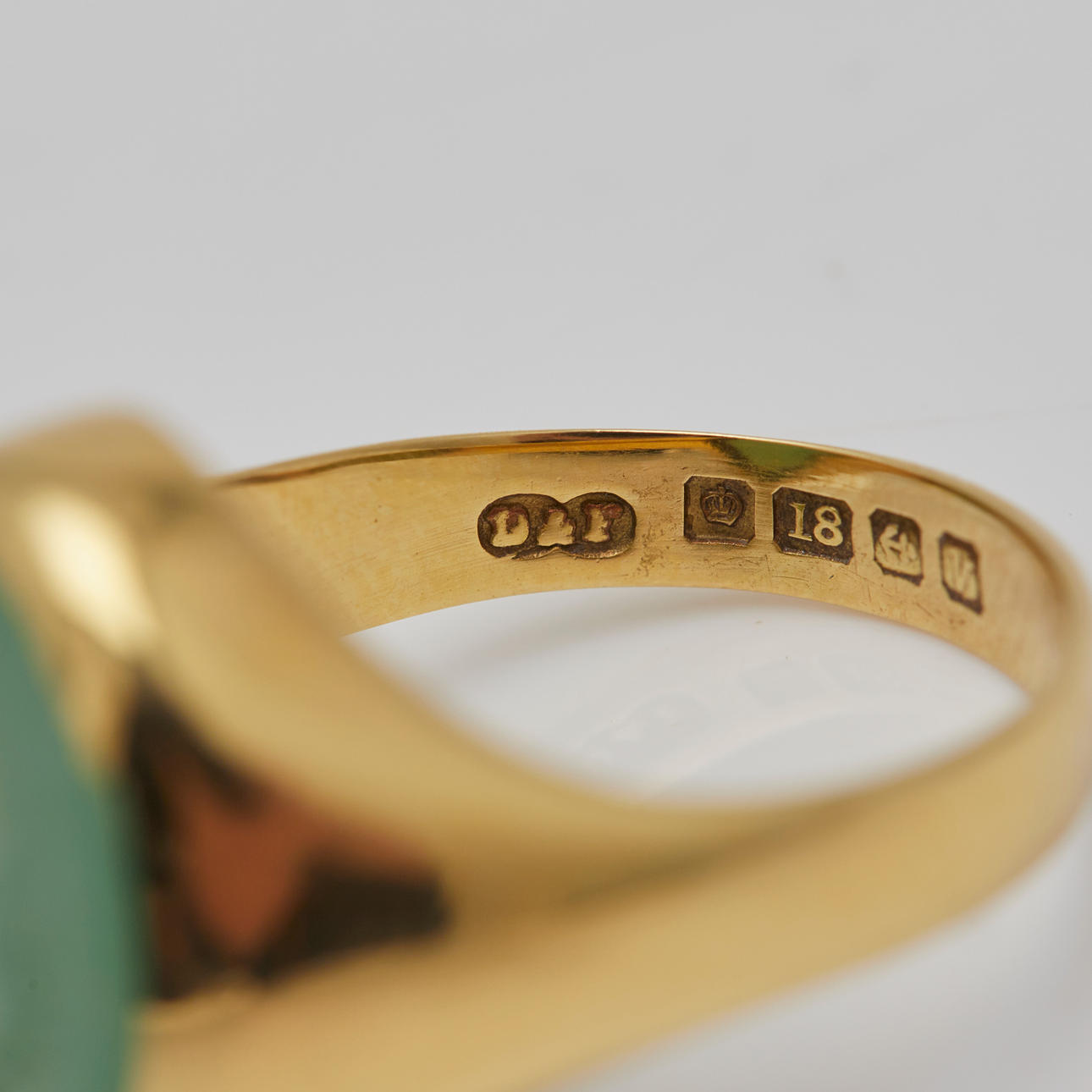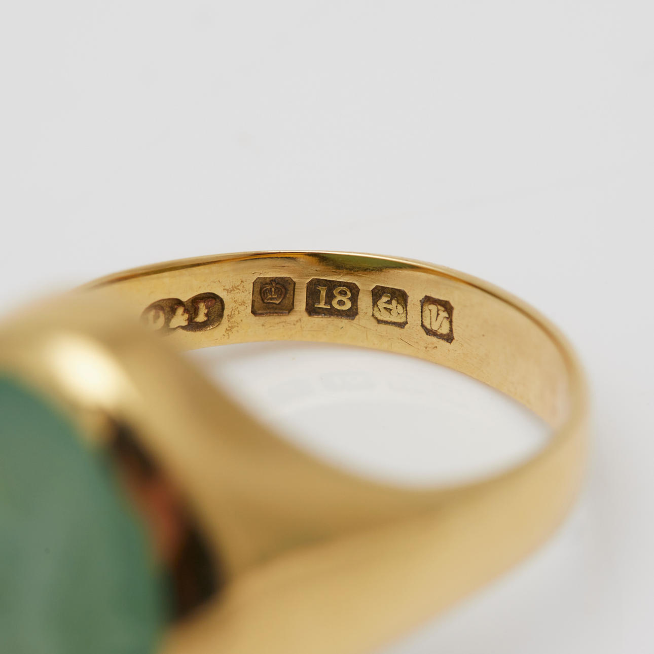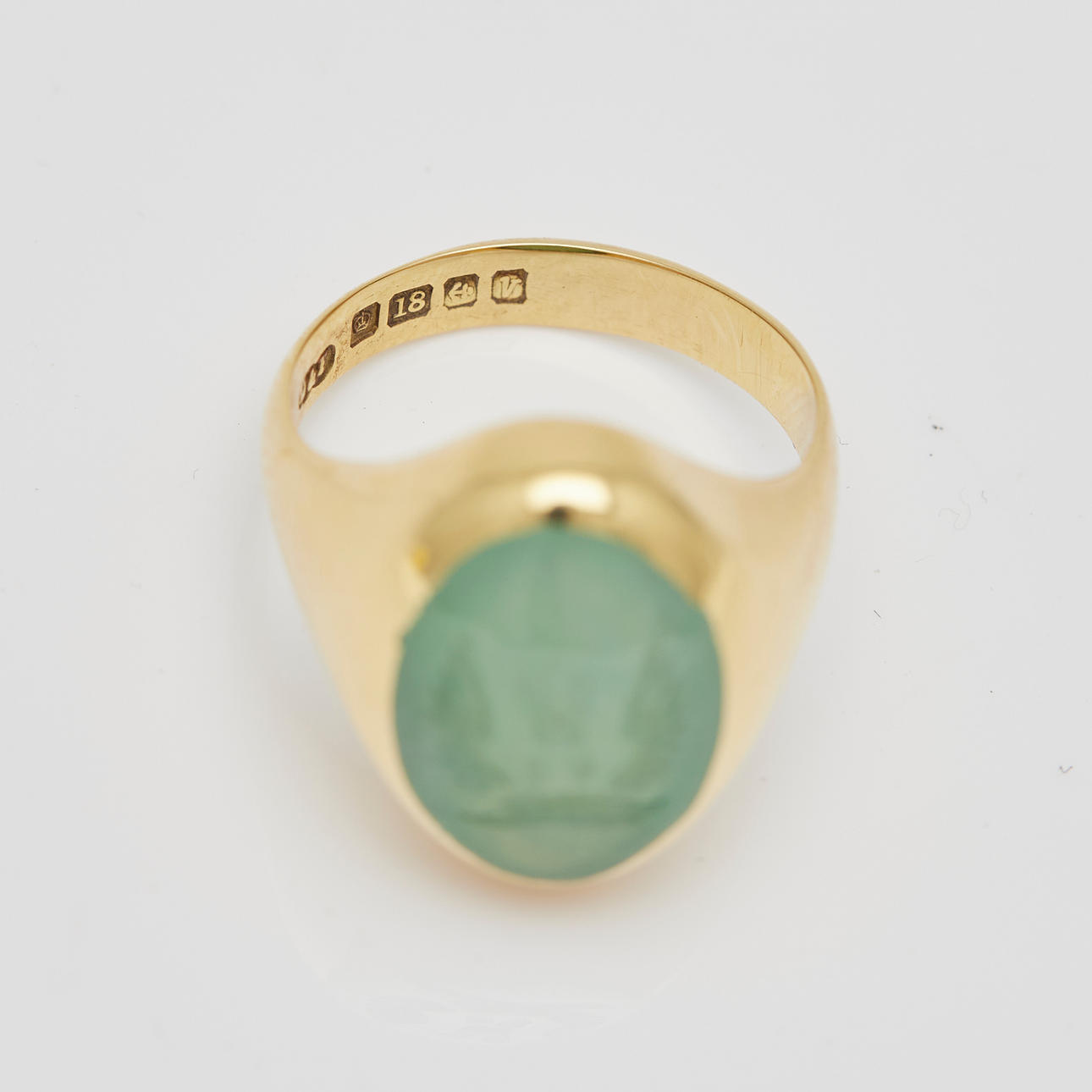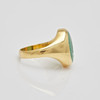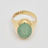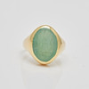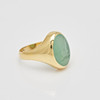 Ring gjord av 750 gult guld, inramad med krysopras och stämplad, stämplad, legering testad, ringstorlek: 50, ringhuvudbredd: 15,9 mm, vikt: 8,1 g.