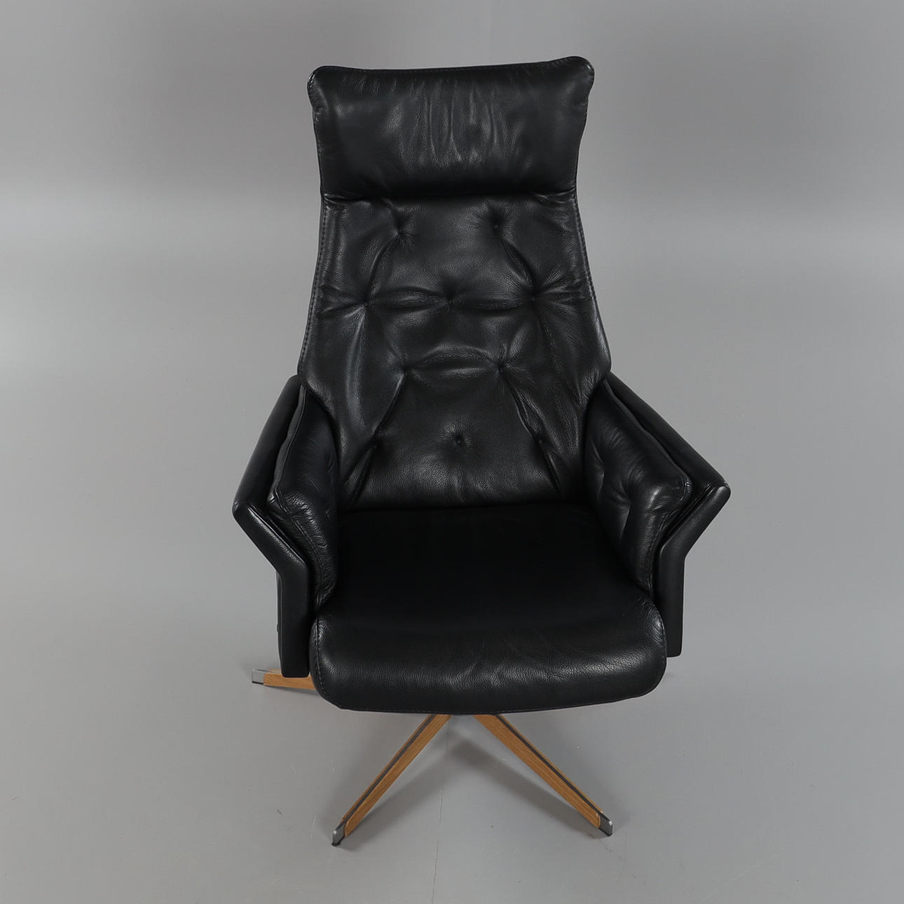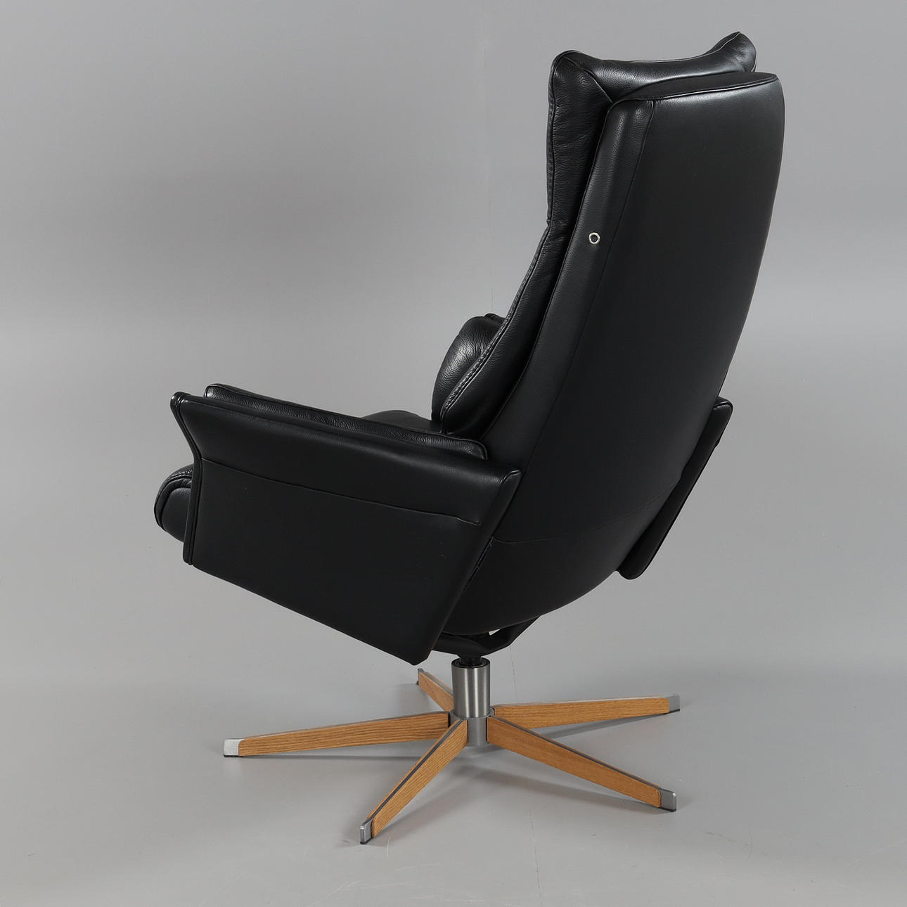 snurrfunktion, justerbar rygg, klädsel i svart läder semi-aniline 8002, sitthöjd ca 45 cm.