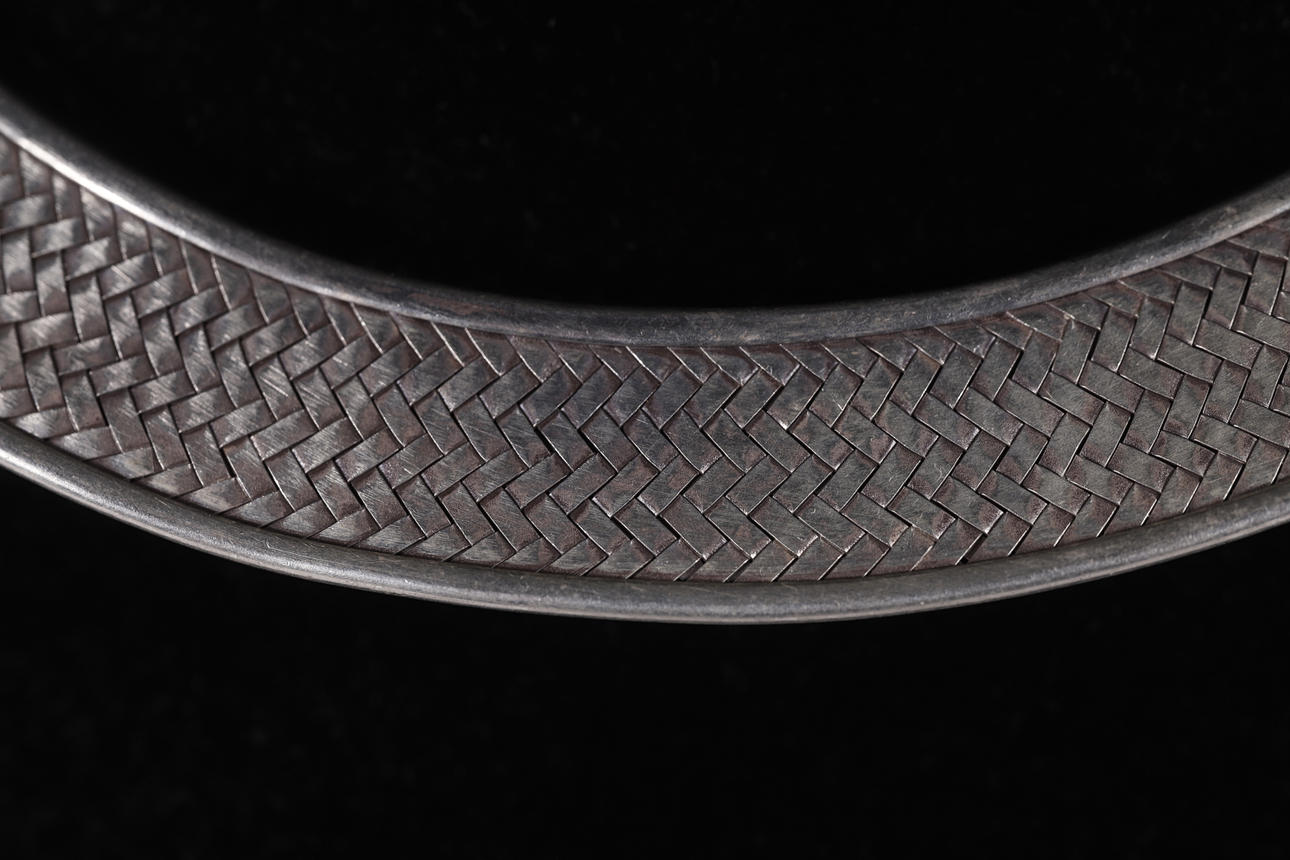 2436287. EGYPTISKA HALSBAND. FLÄTAT SILVER.