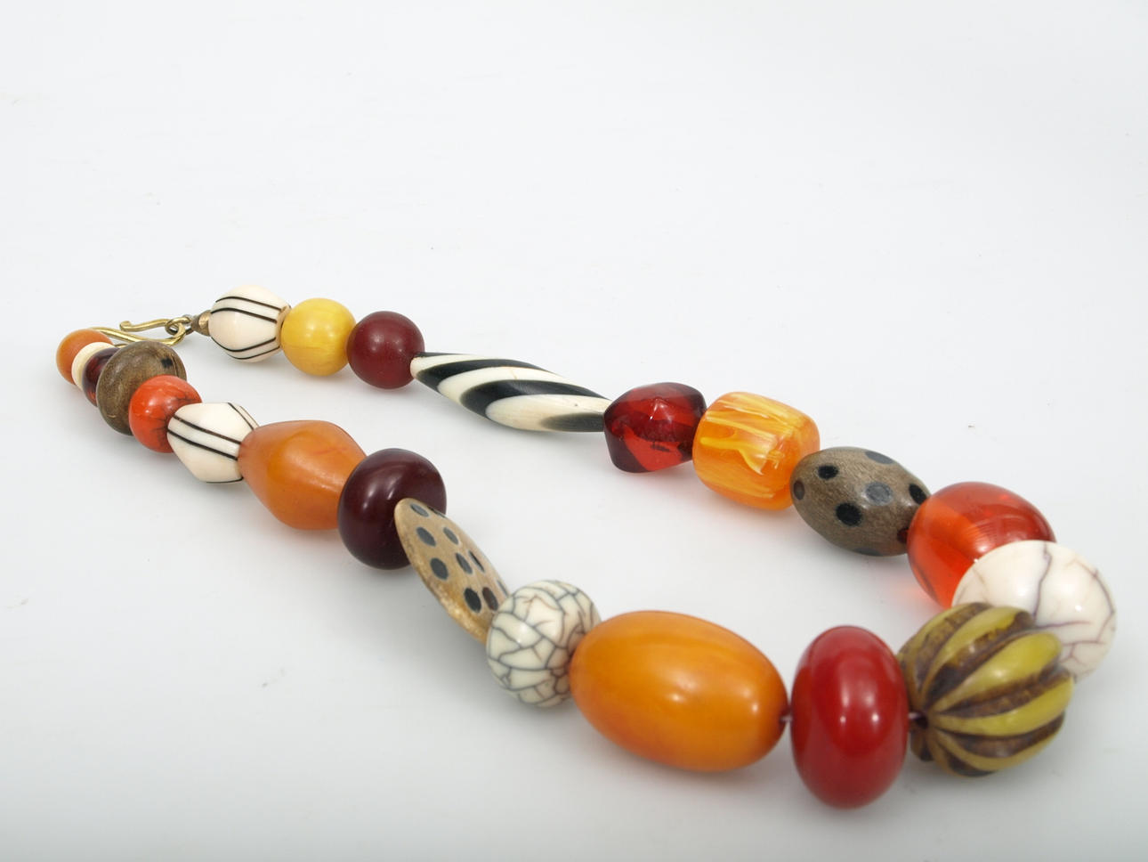 243786. HALSBAND, olikfärgade plastkulor/stenar.