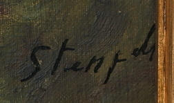 243997. OIDENTIFIERAD KONSTNÄR. Olja på duk, övergiven gård, signerad.
