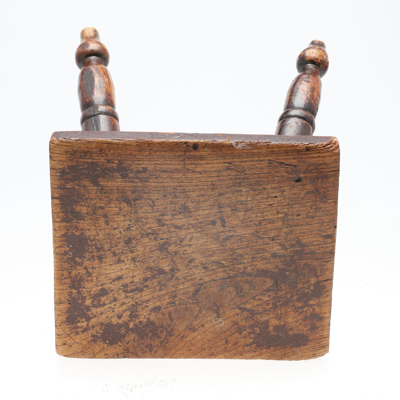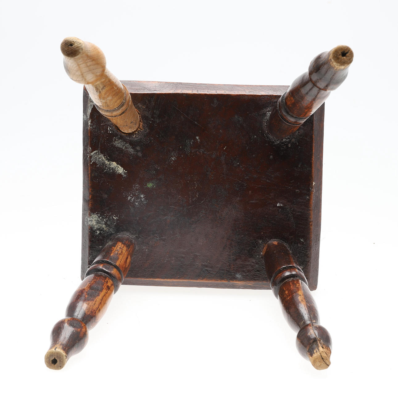 Upphöjd på fyra vända ben. 20cm hög x 22cm bred x 18cm djup.