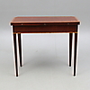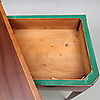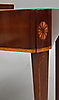 Mahognyfaner med intarsia av ljusare träslag. Längd 88,5, bredd 43,5, höjd 78 cm.