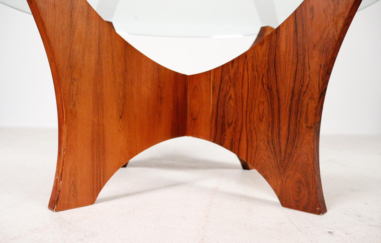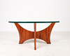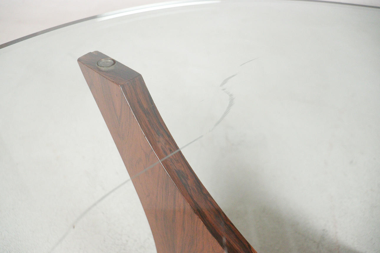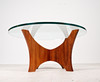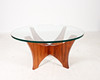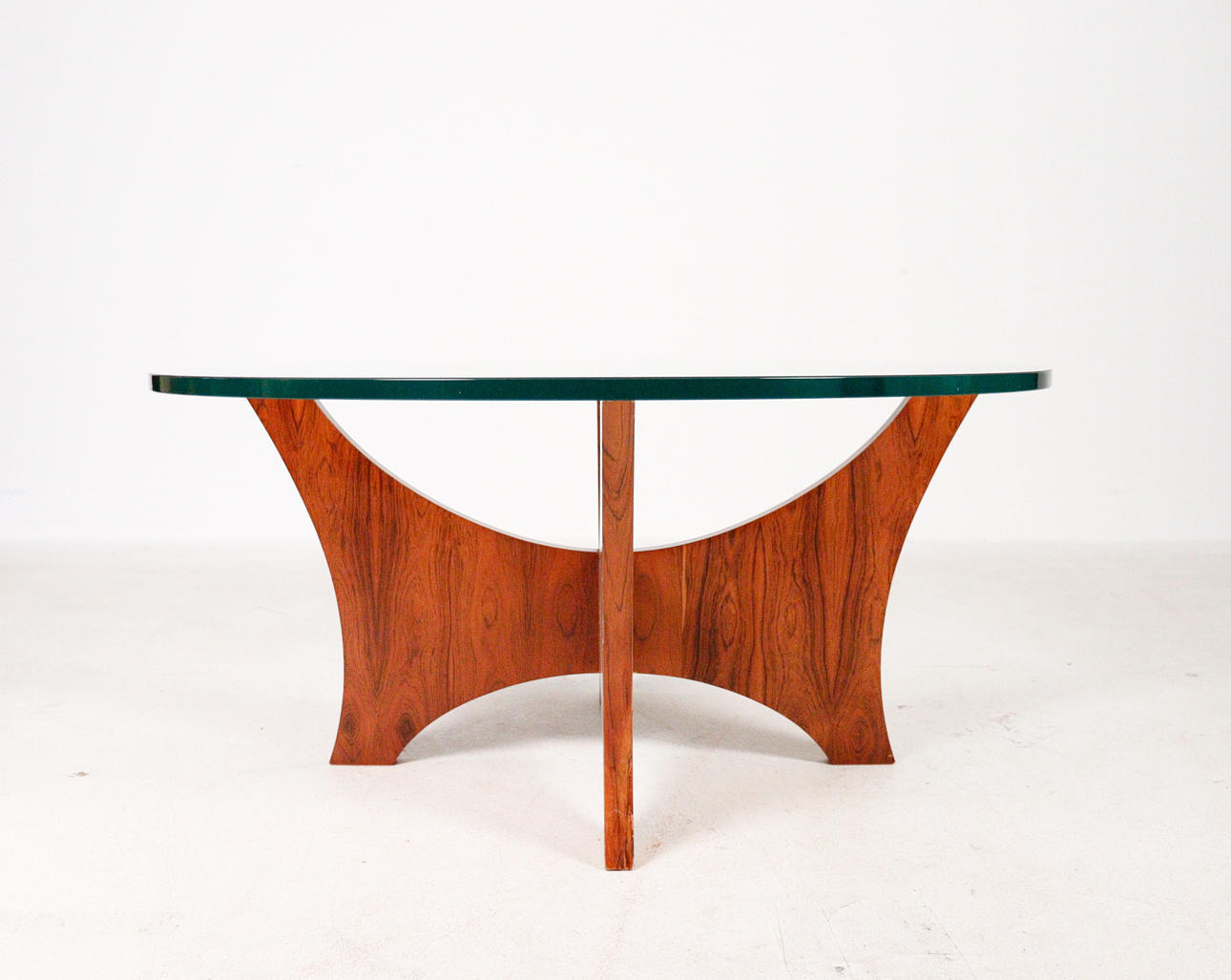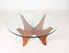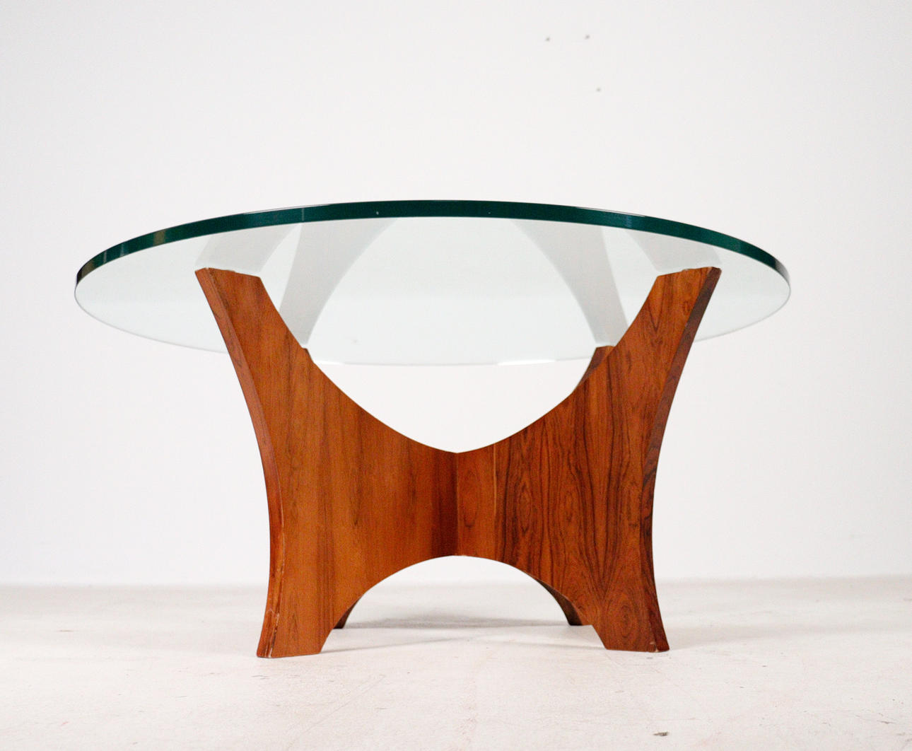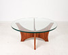Skandinaviskt soffbord från mitten av århundradet, 1970-tal, konstruktion av tungt kornigt trä, med en rund glasskiva (lös),