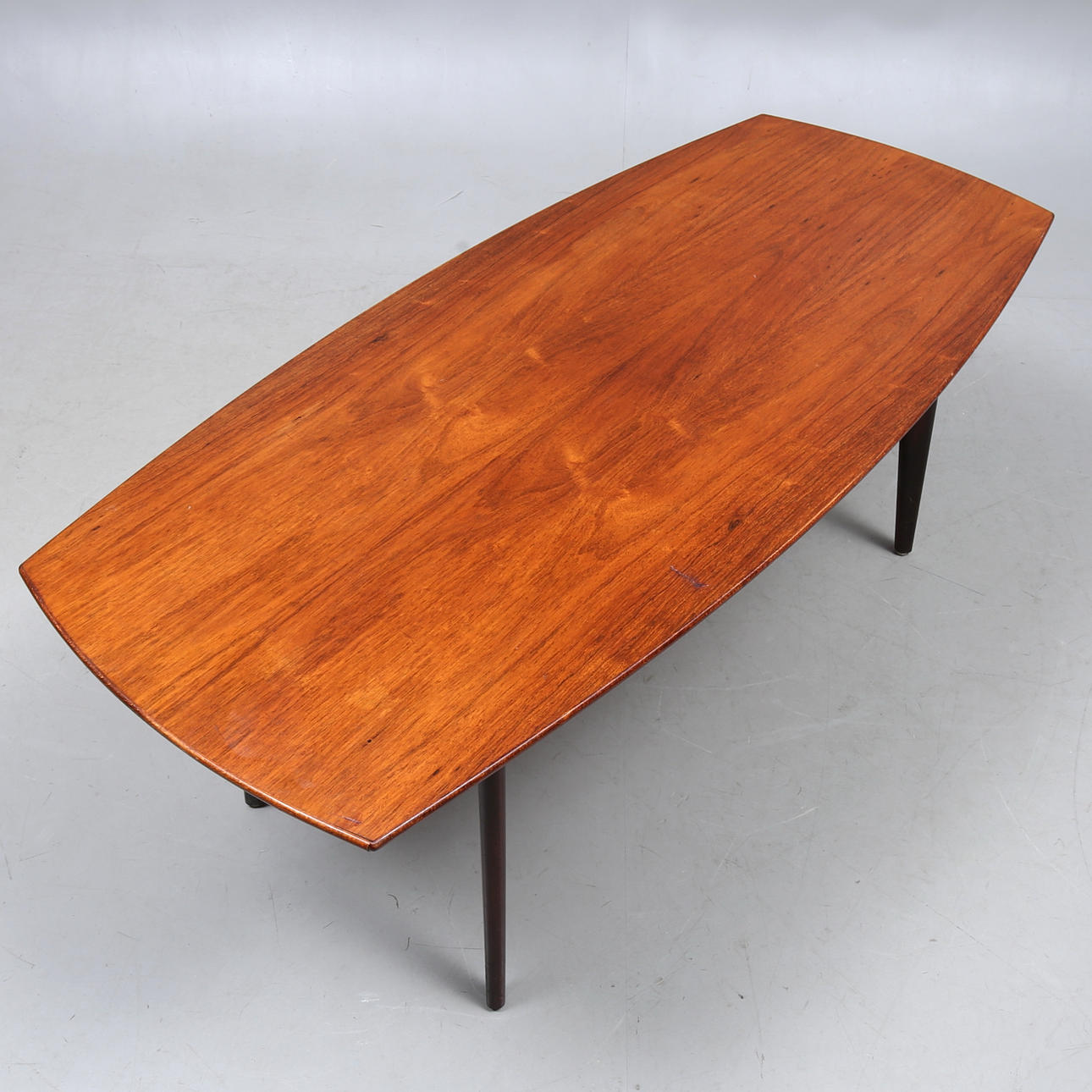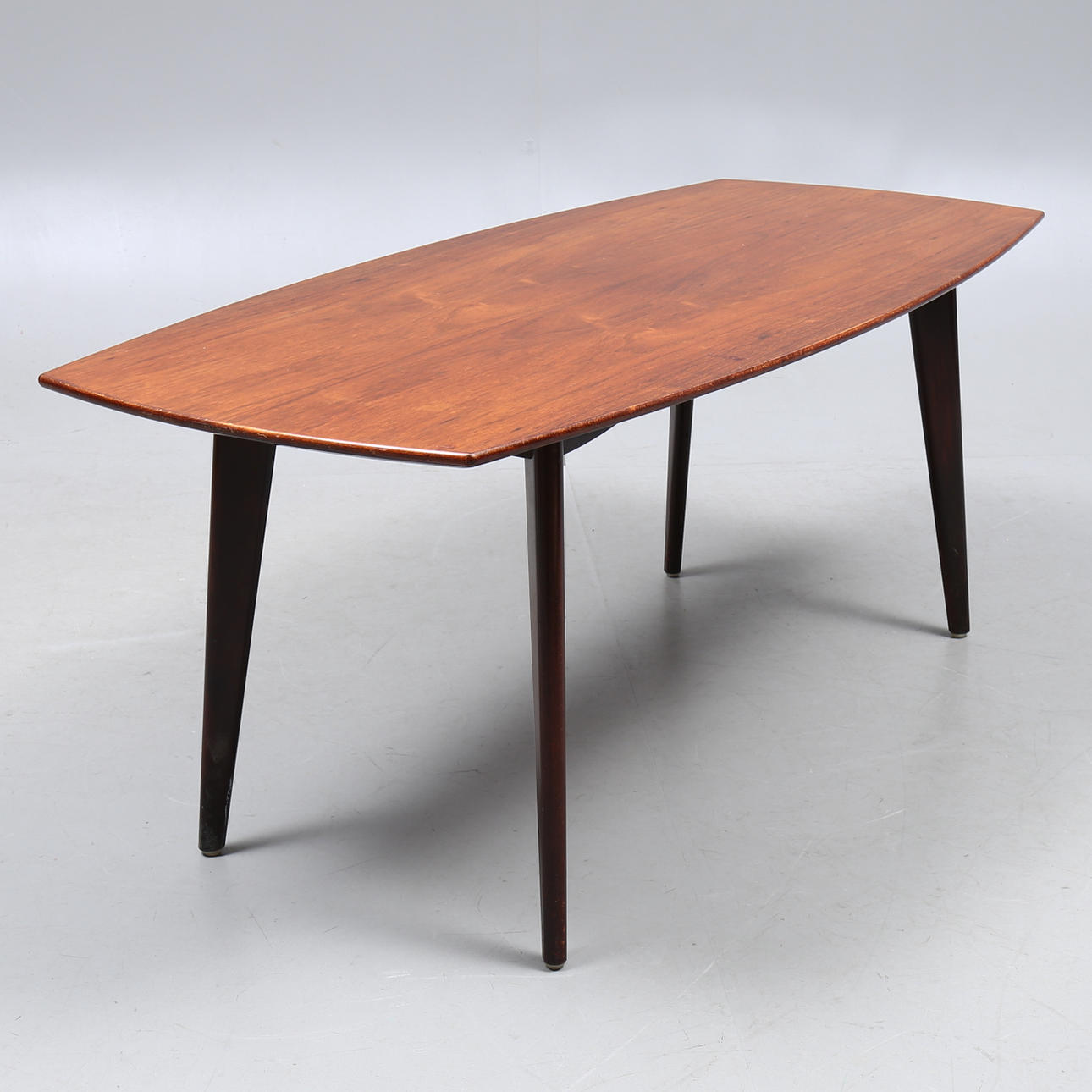 Rundad, rektangulär form, mörkbetsade ben. 135x60, höjd 53 cm.