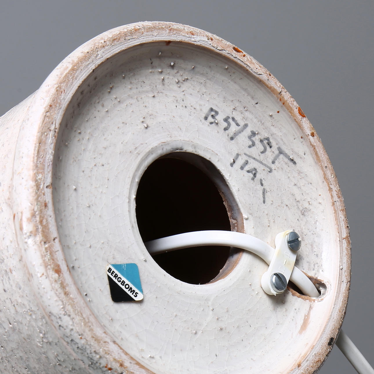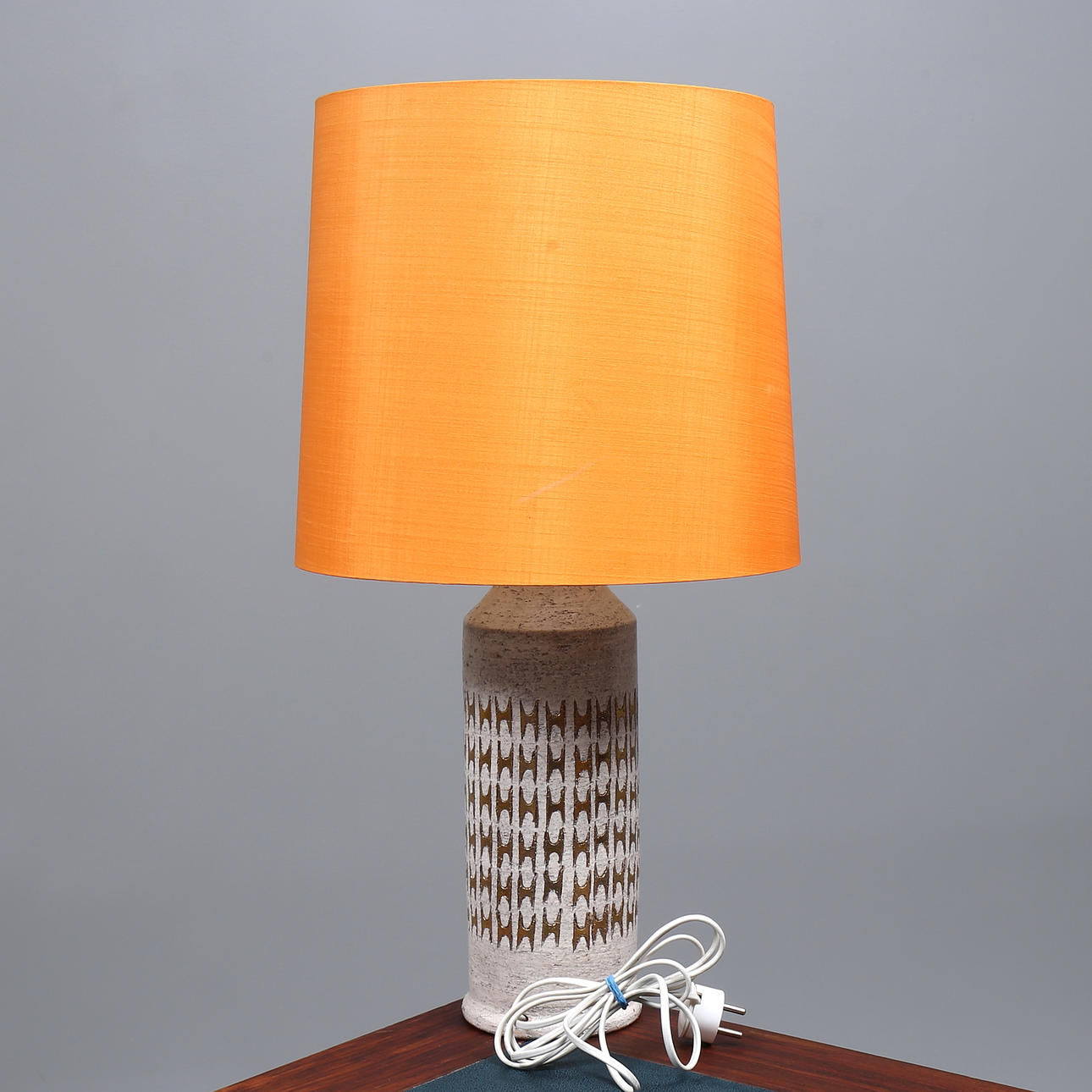 Märkt samt etikettmärkt. Höjd inklusive lampsockel ca 42 cm, total höjd inklusive skärm ca 63 cm.