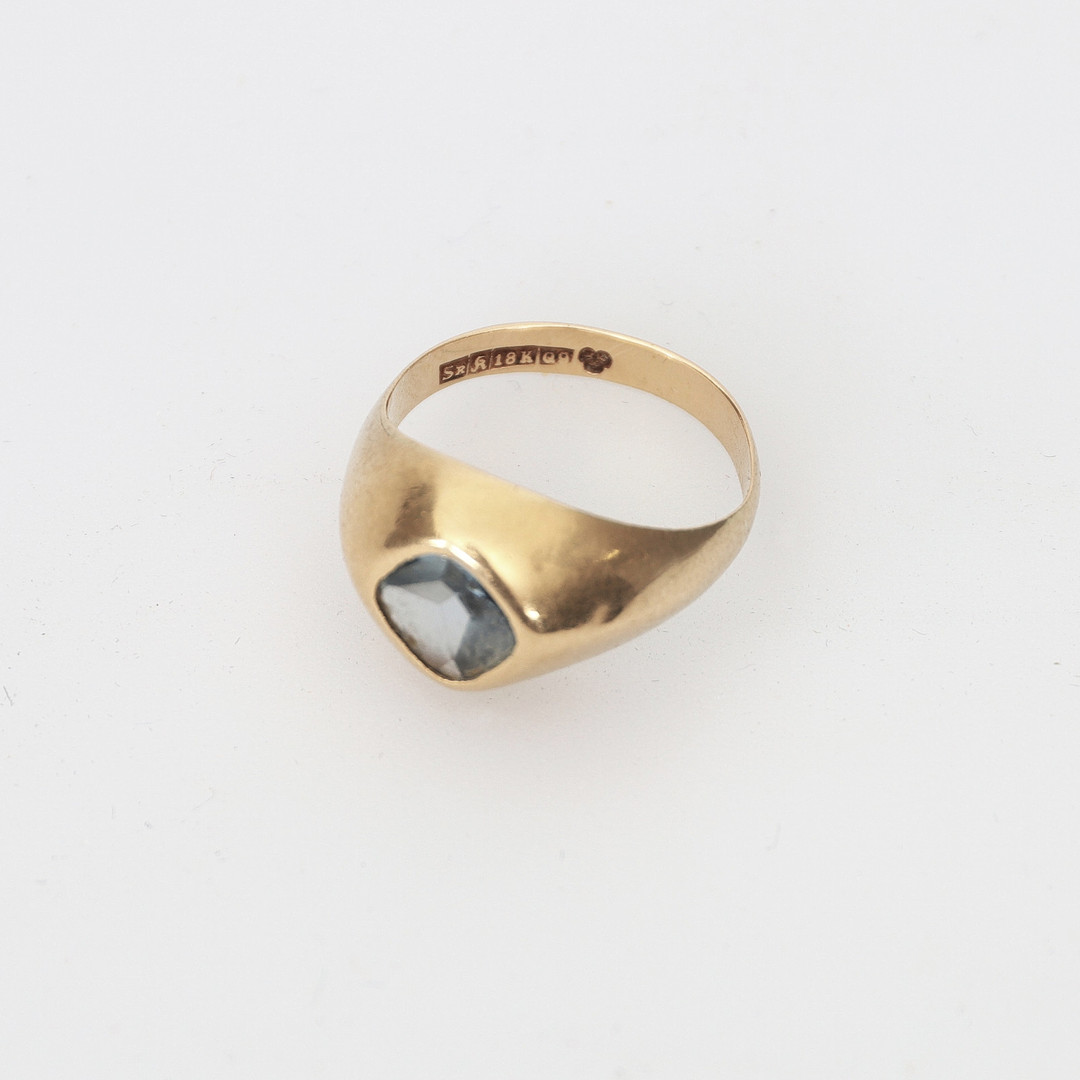 2451234. RING MED LJUSBLÅ STEN, 18K guld, 1966.