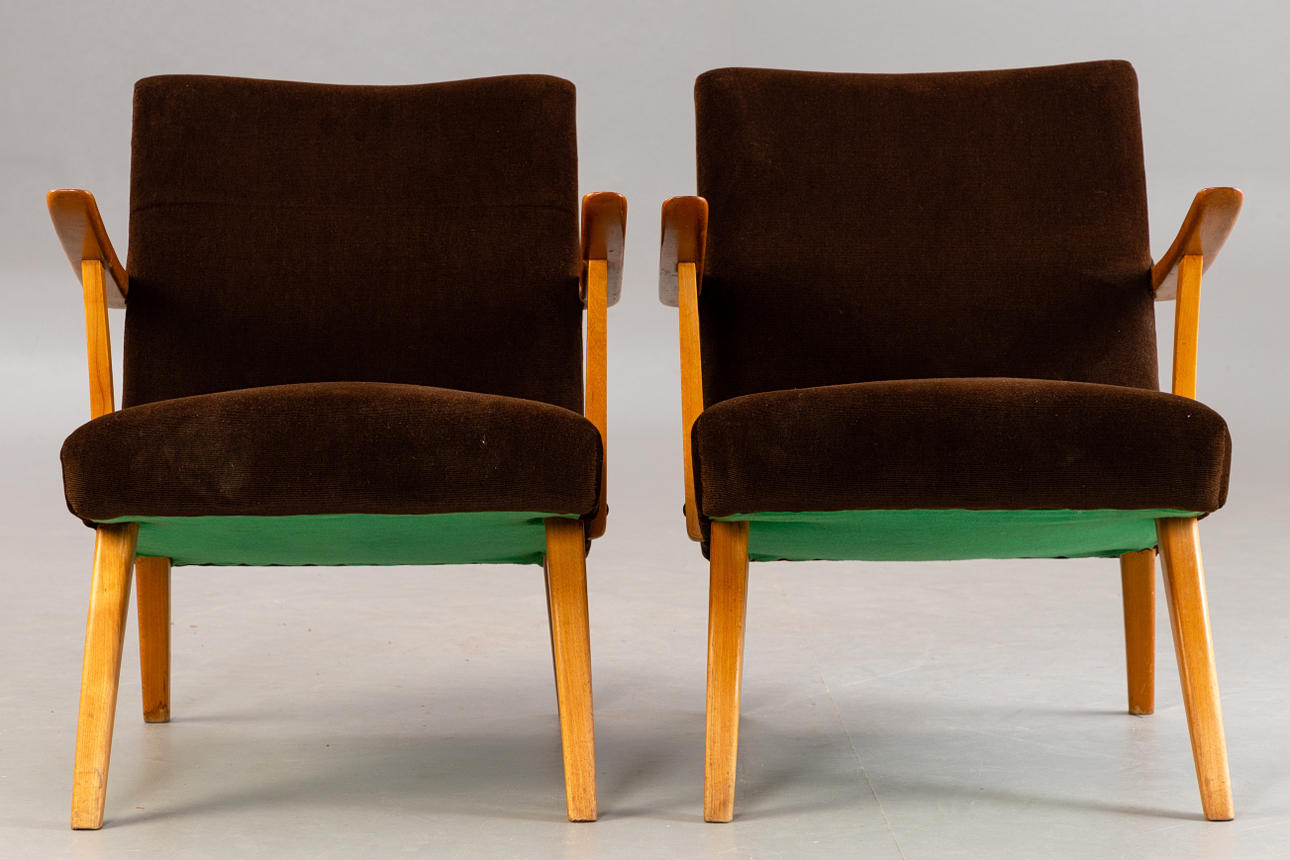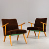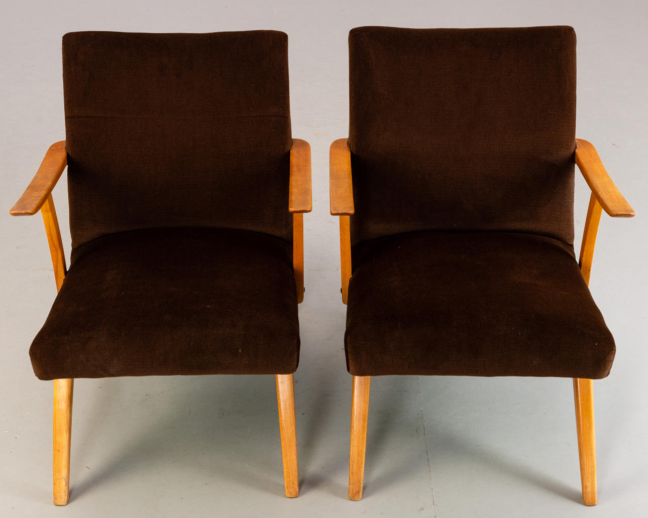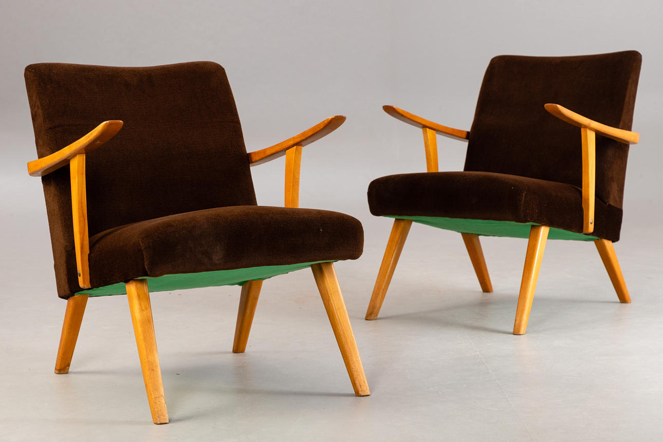 KNOLL ANTIMOTT, fåtöljer, ett par. Tyska mitten av århundradet design träram Klädd och täckt i brunt tyg