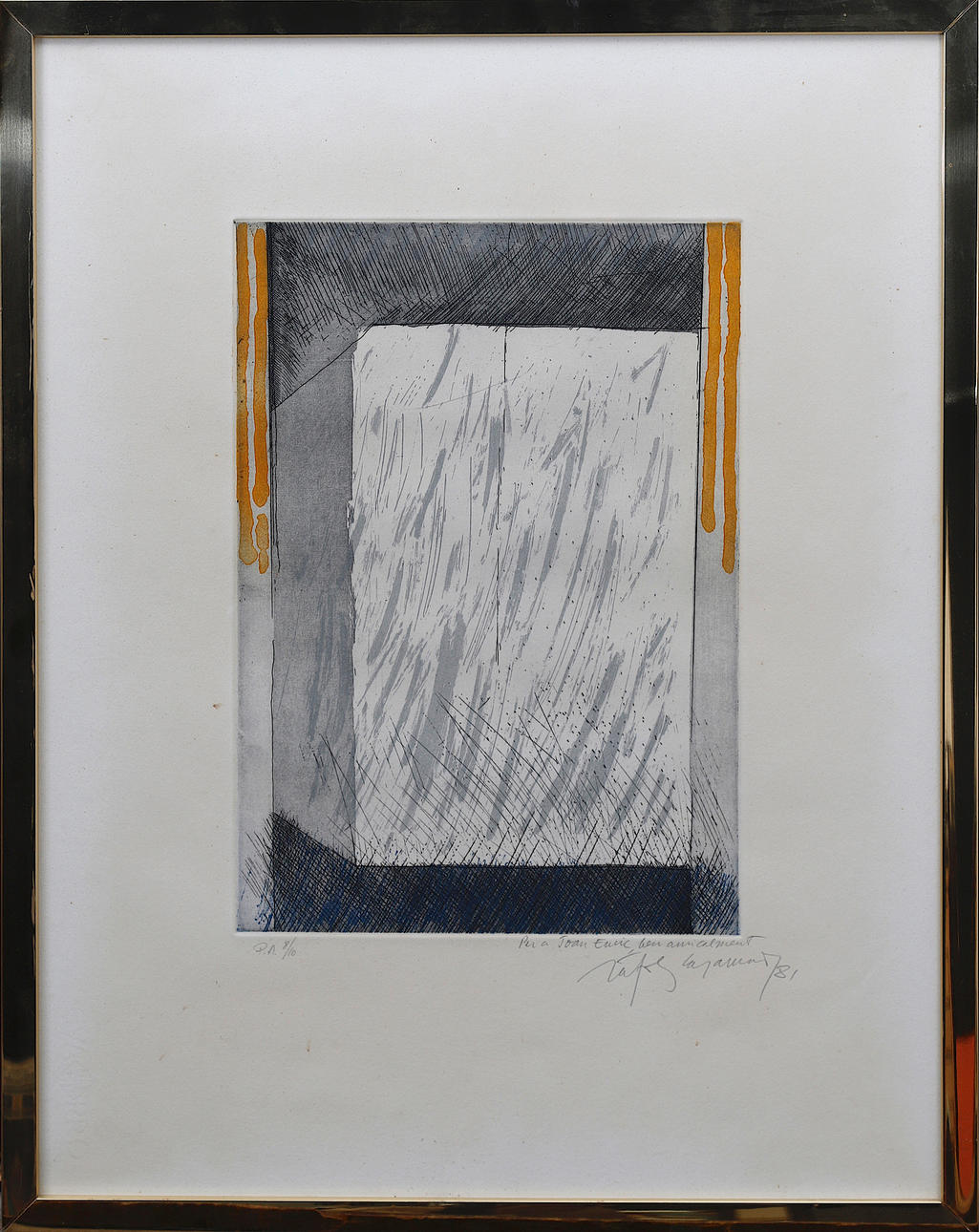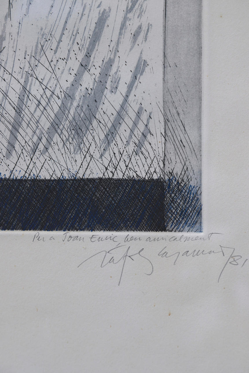 Etsning. Signerad, dedikerad, daterad 1981, motiverad ”P.A.8/10". 62,5 x 49 cm.