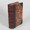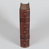 Halvfranskt band, upphöjda bindningar och marmorerade pärmar.