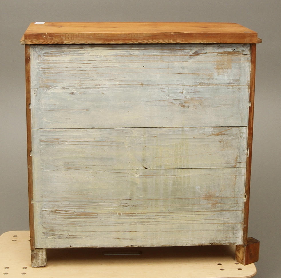 Byrå med bruksslitage och ett löst bakben. Stol med skador.