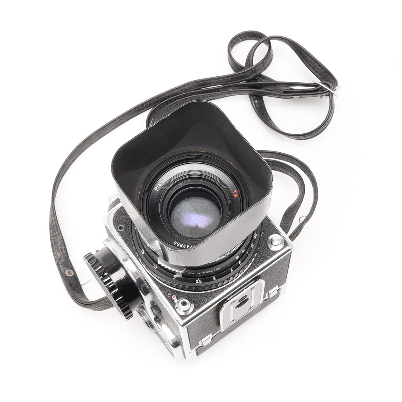 Objektiv, Hasselblad, Synchro compur Carl Zeiss Nr 5743868, Planar 1:2,8 f=80 mm.