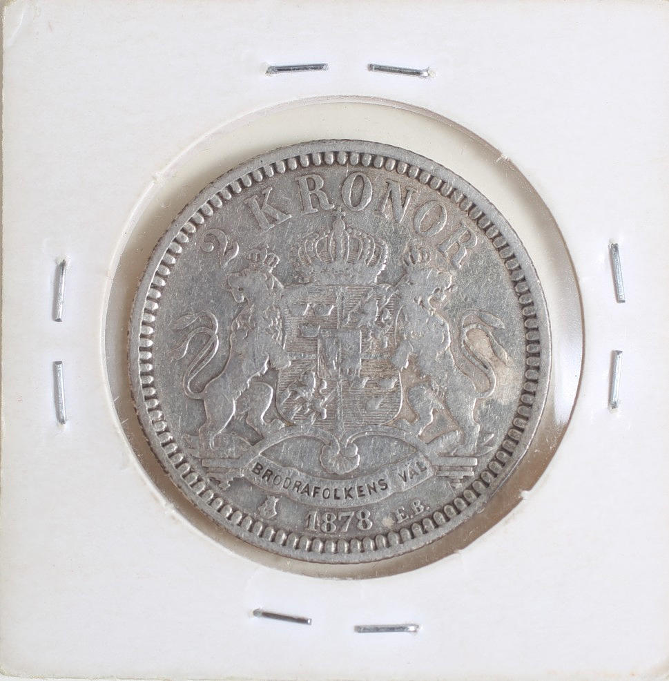 SILVERMYNT 2 kronor Sverige år 1878.