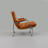 Stålrör, brunt skinn. Bredd ca 74, djup ca 75, sitthöjd ca 39 cm.