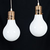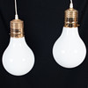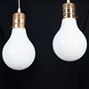 Mässingsfäste och vit glaskupa.