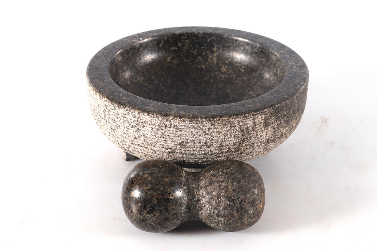 Höjd 9,5 cm. Diameter 19 cm. Stötens längd 11 cm.