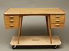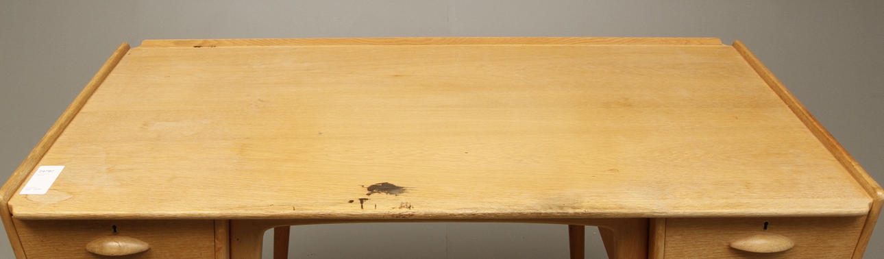 Bläck/fuktfläckar på skiva. Fanérskador på lådor. Slitage.