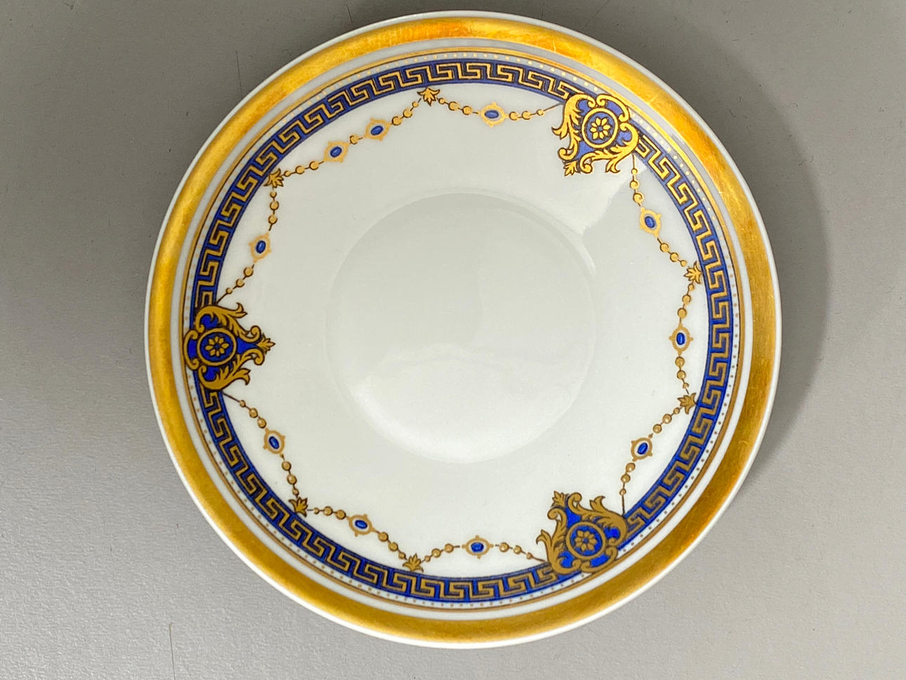 I Limoges porslin med kejserligt motiv i blått och guld.