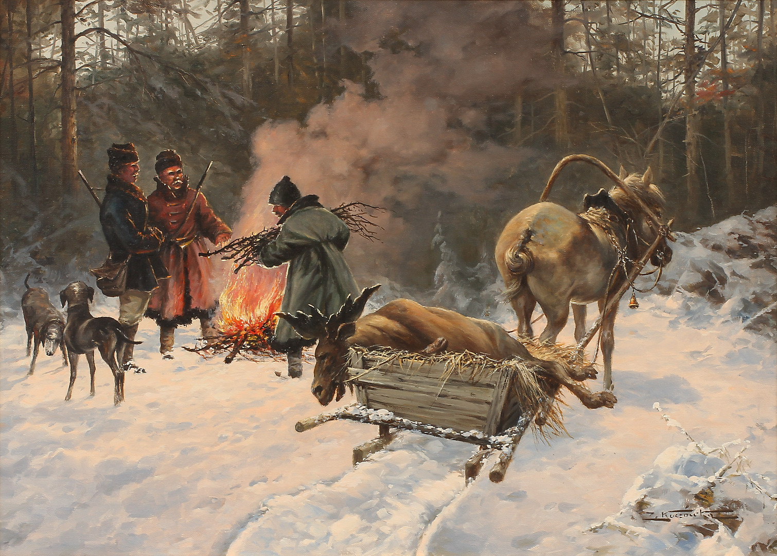 248029. ZYGMUNT KACZOWKA. Efter älgjakten, olja på duk, signerad.