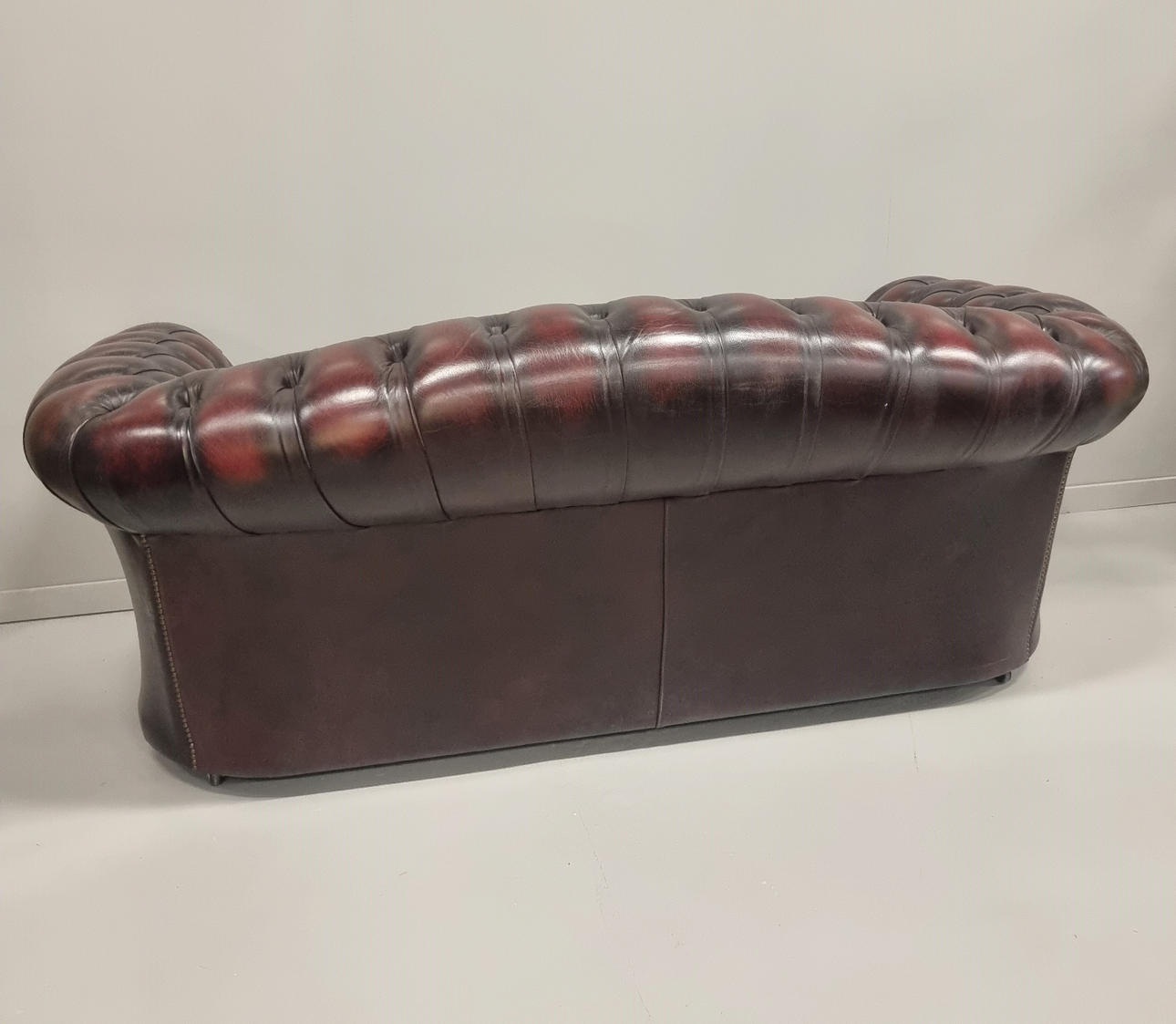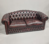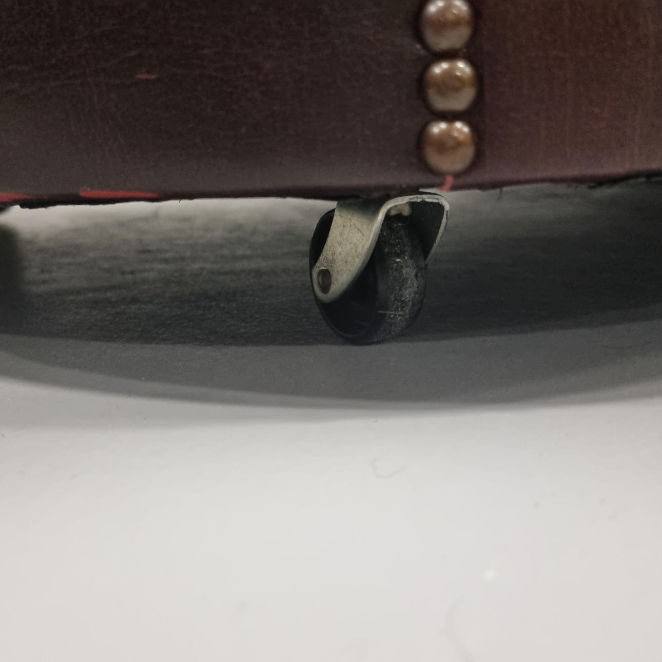 Djuphäftad, lösa stoppade dynor, dekor av pärlspik, 2 bakben på hjul. Höjd ca 80cm. Längd ca 185cm. Bredd ca 105cm.