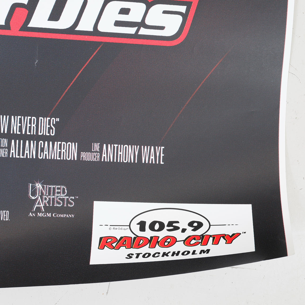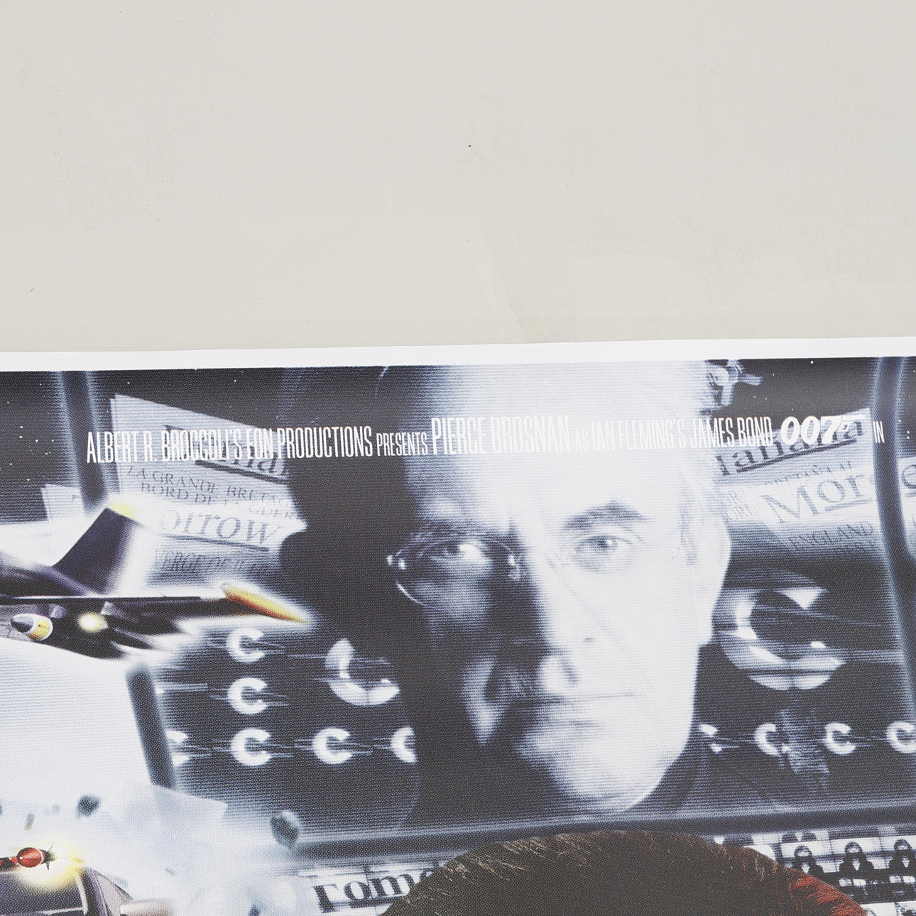 Med Pierce Brosnan, "Tomorrow never dies". Ca 173 x 108 cm.