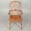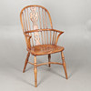 1900-talet, den hooped stick tillbaka med böjda armar, central genomborrad splat, dished alm sits och vände ben med crinoline främre bår,