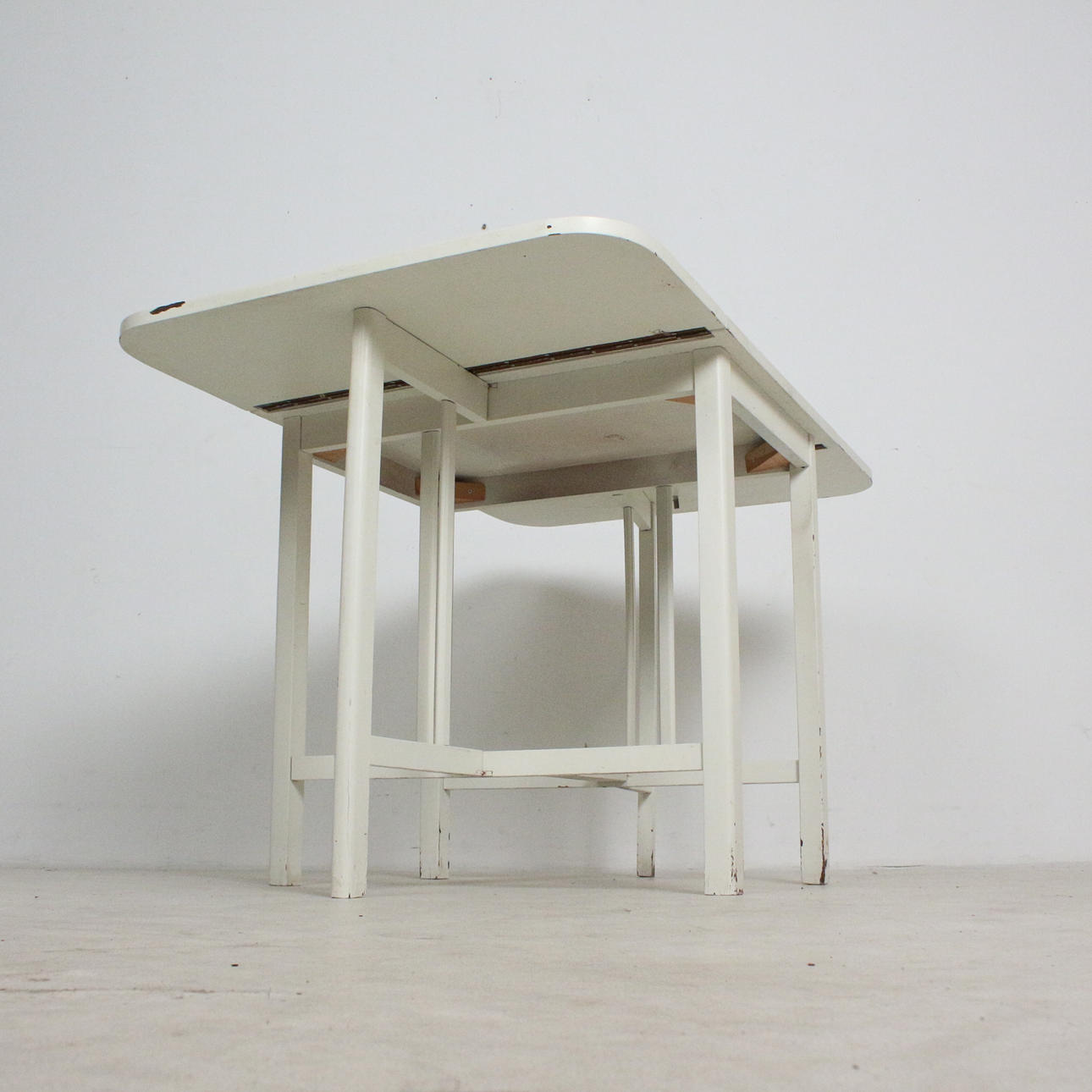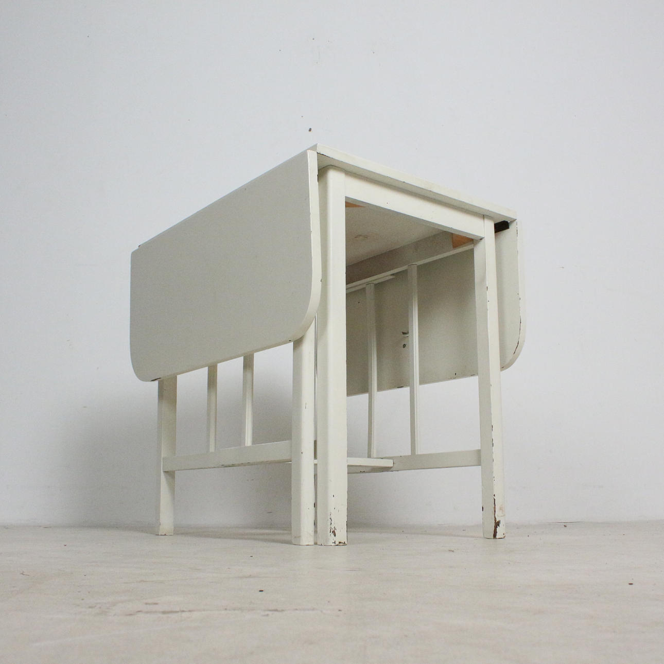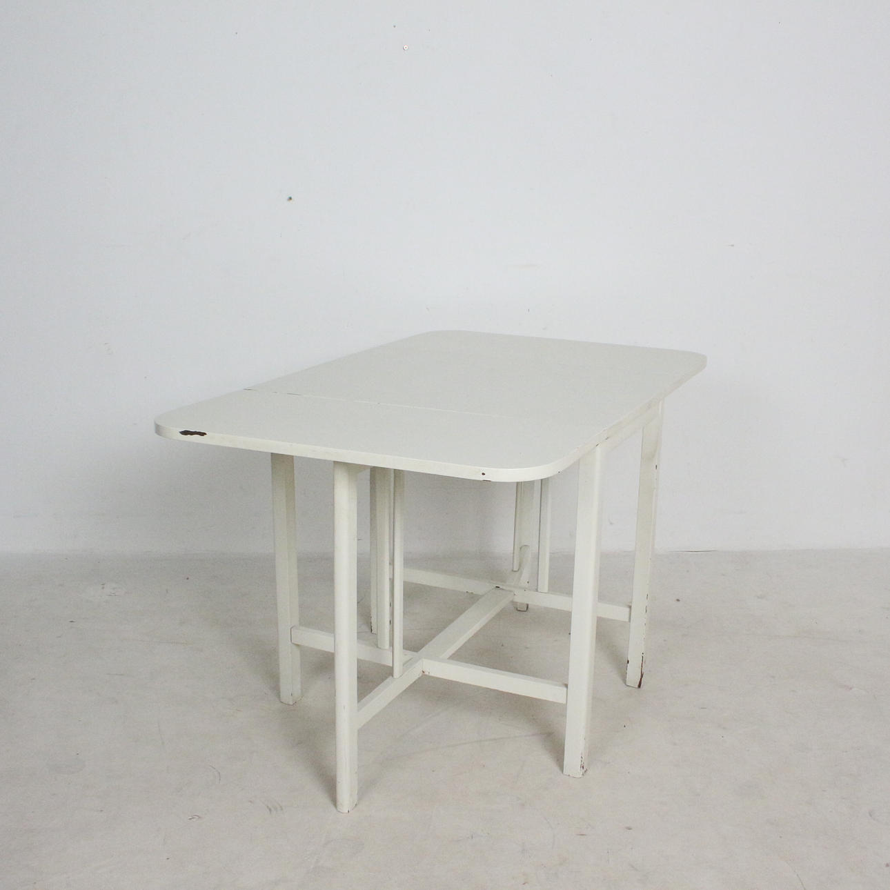 fällbord, trä, vitmålad, Mått: ca.: H. 72 cm, B 56,5 - 124 cm, D. 75 cm.