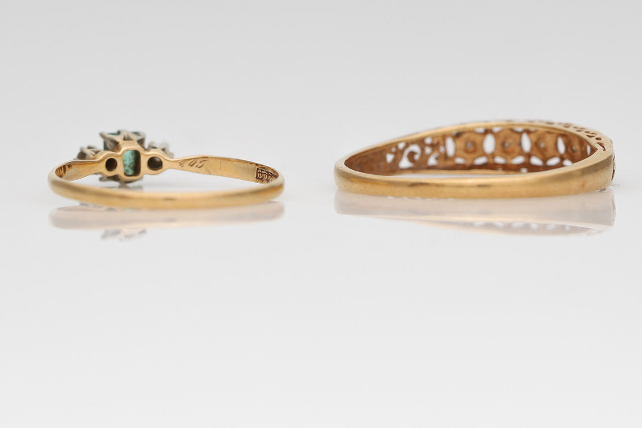 2497729. RINGAR, 2 st. 18 guld med stenar.