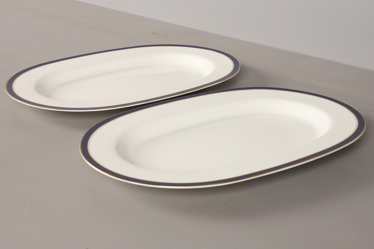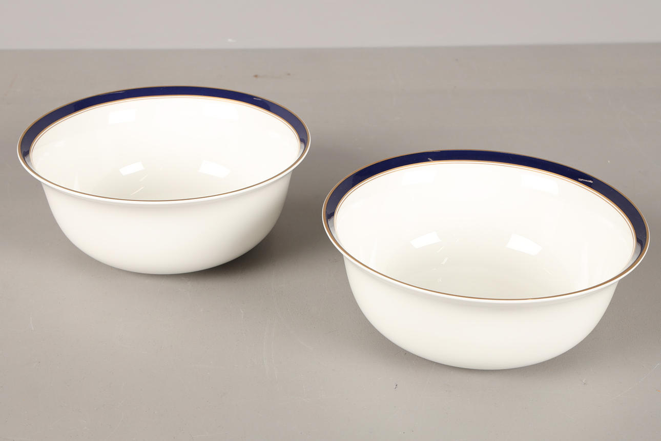 bestående av 15 mattallrikar, diam 27 cm 15 efterrätt, diam 21,5 cm 2 potatisskålar, höjd 9, diam 21 cm 2 uppläggningsfat, ca 40x27 cm.