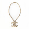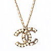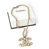 Dekorativa pärlor och paste med detalejer i metall och läder i form av CC-logo. Märkt "CHANEL B 19 C MADE IN ITALY". Kedja med längd ca 40 cm. Hänge med höjd ca 3,5 cm. Originalask, tyg- samt keramik kamelia och presentsnöre medföljer.