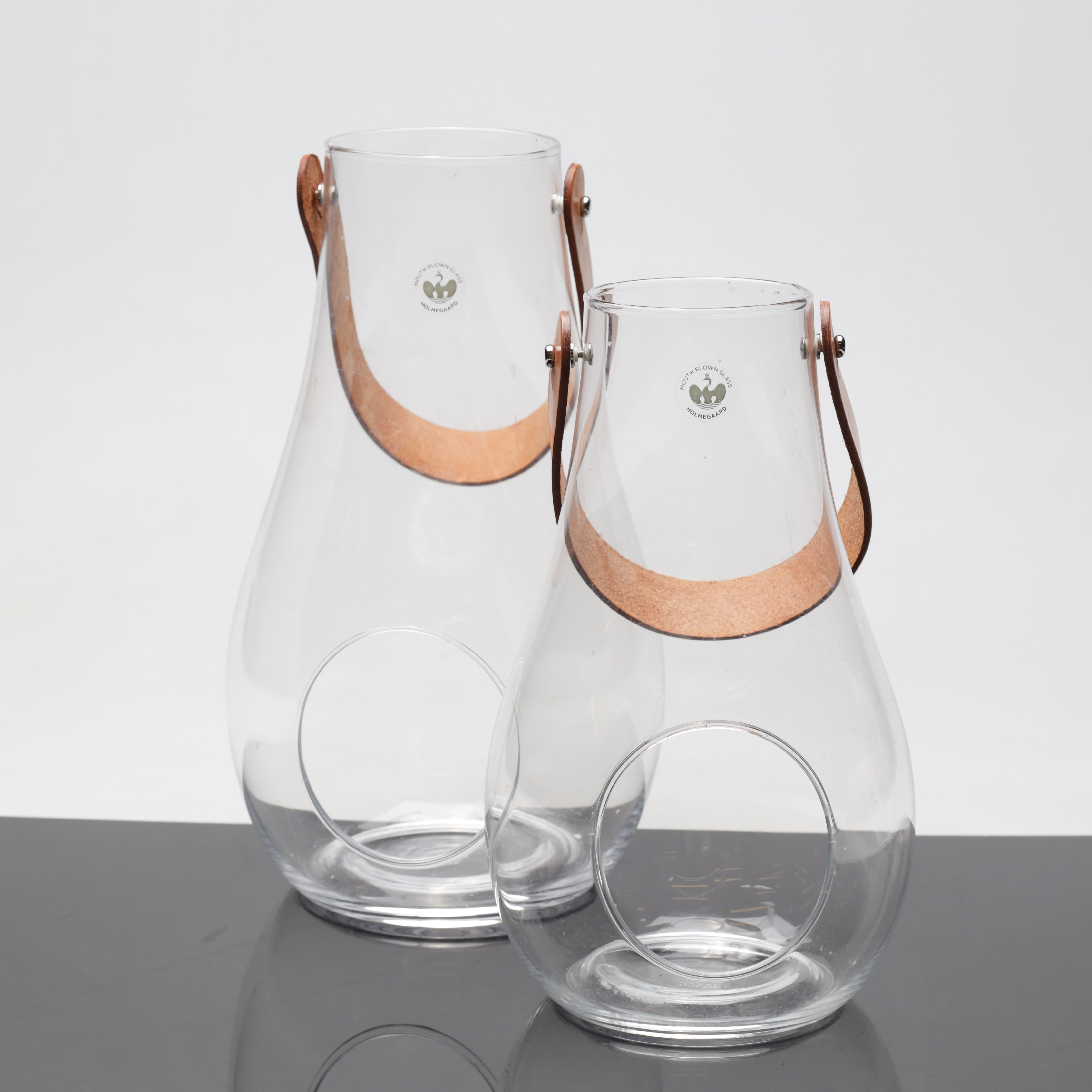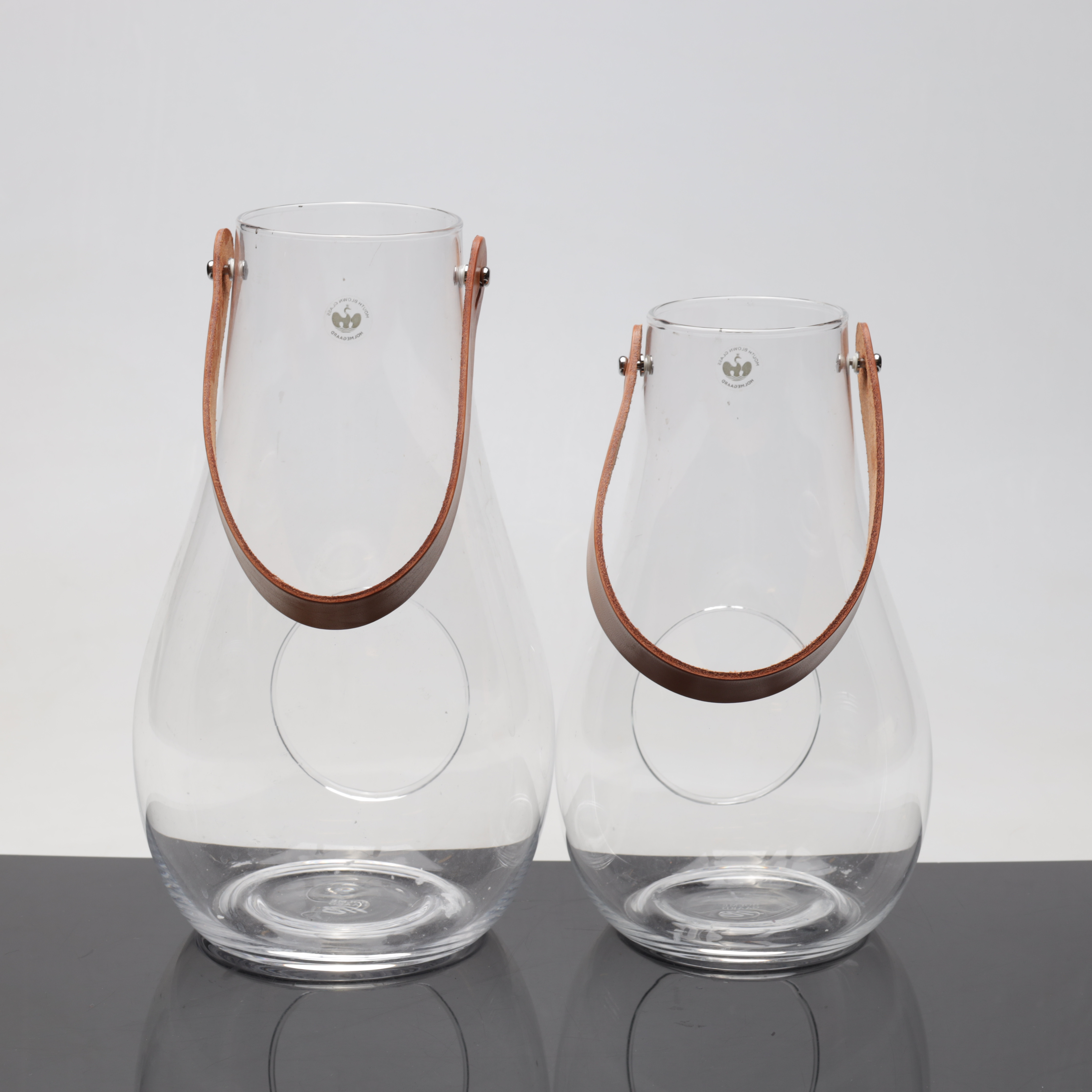 2500845. MARIA BERNTSEN. Ljuslyktor, 2 st, glas, Holmegaard, Danmark, samtida.