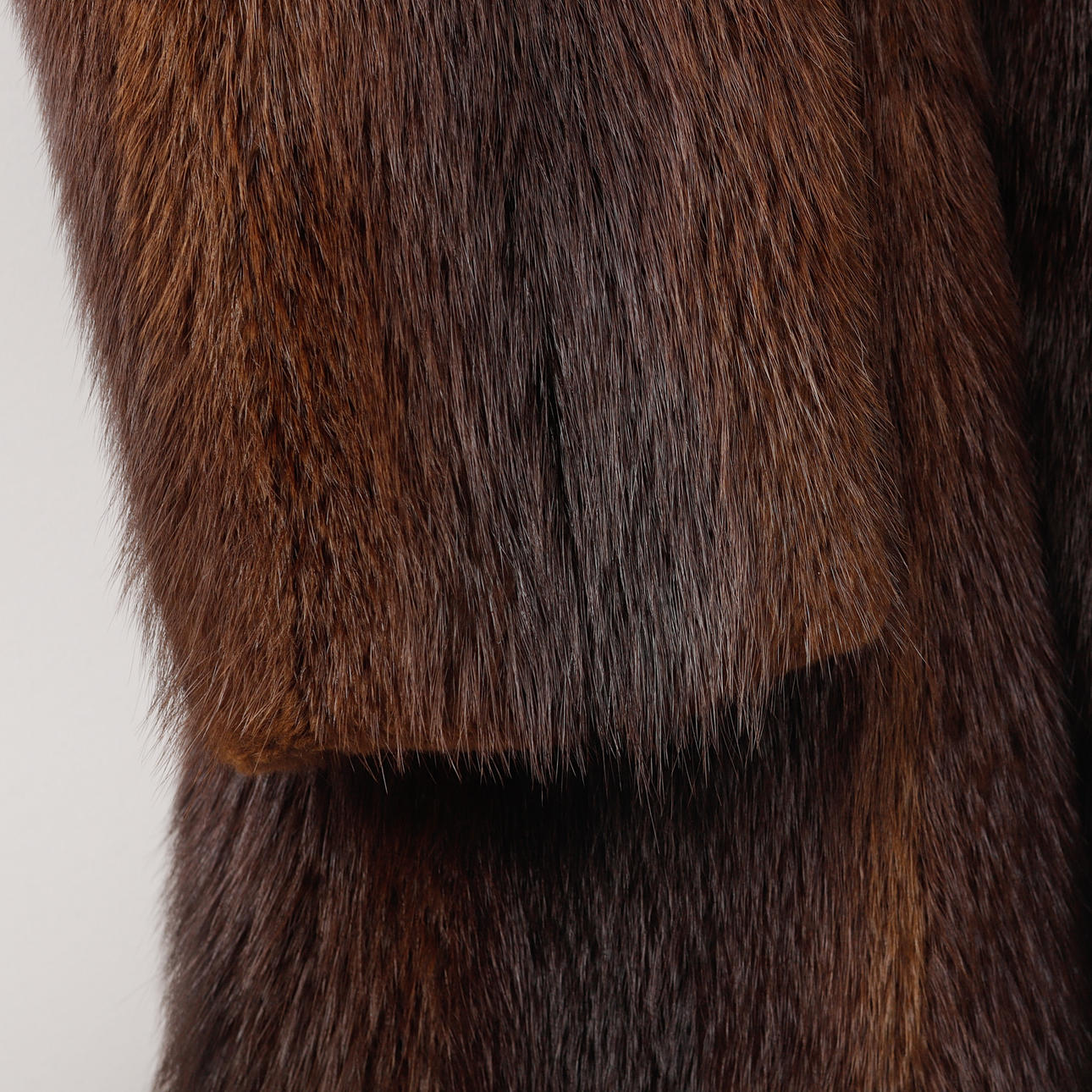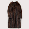 Knäppning med hyska och hake. Etikettmärkt "Nya AB Nordiska Pälsaffären Karlstad". Rygglängd ca 104 cm, bystvidd ca 96 cm, ärmlängd ca 63 cm.