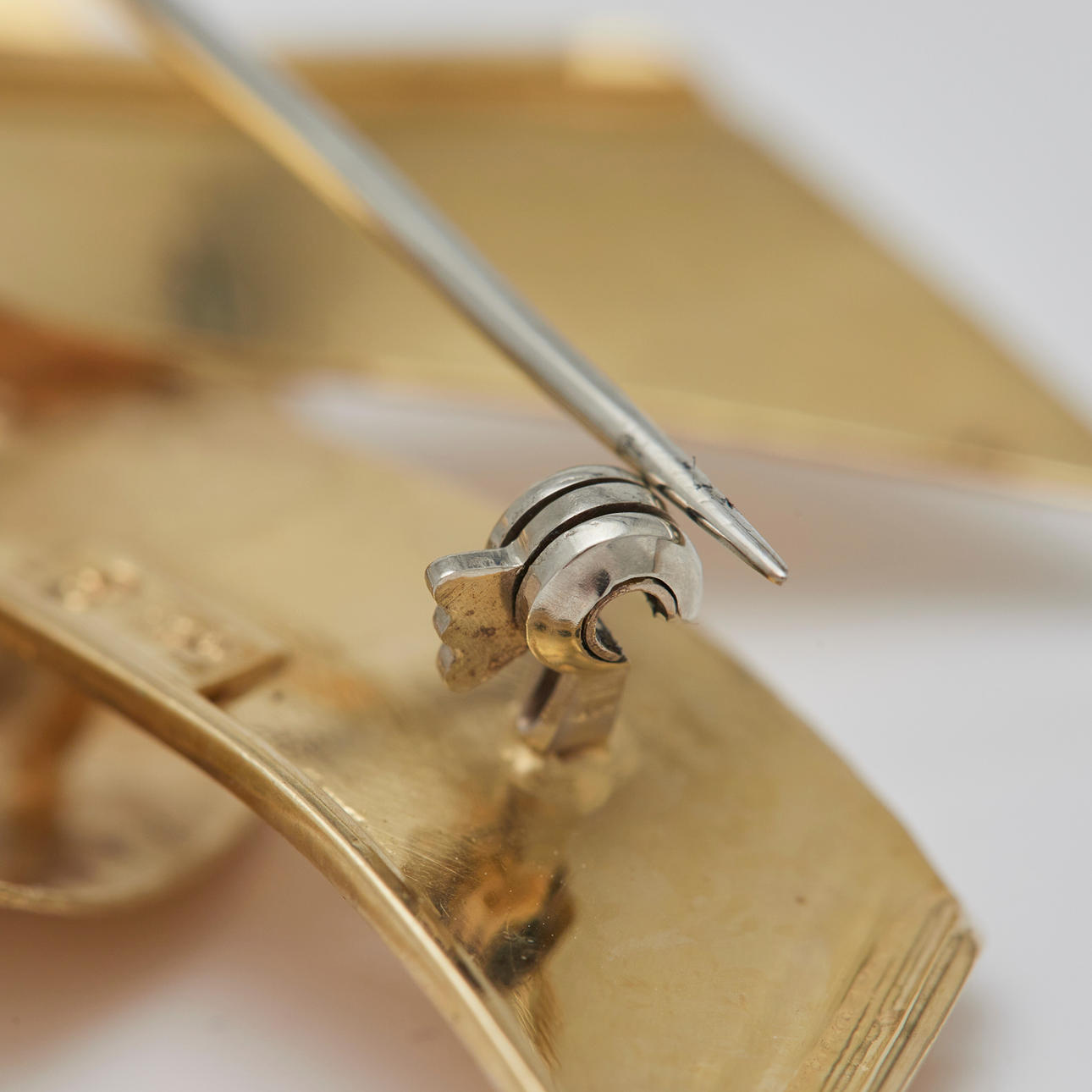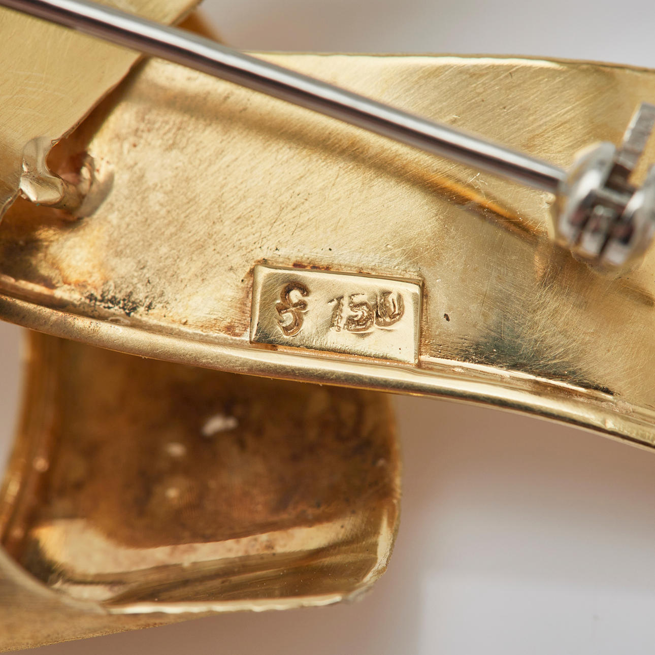Brosch gjord av 750 gult guld, stämplad på baksidan, legering testad, L.56mm, W.35mm, vikt: 8,84 g.