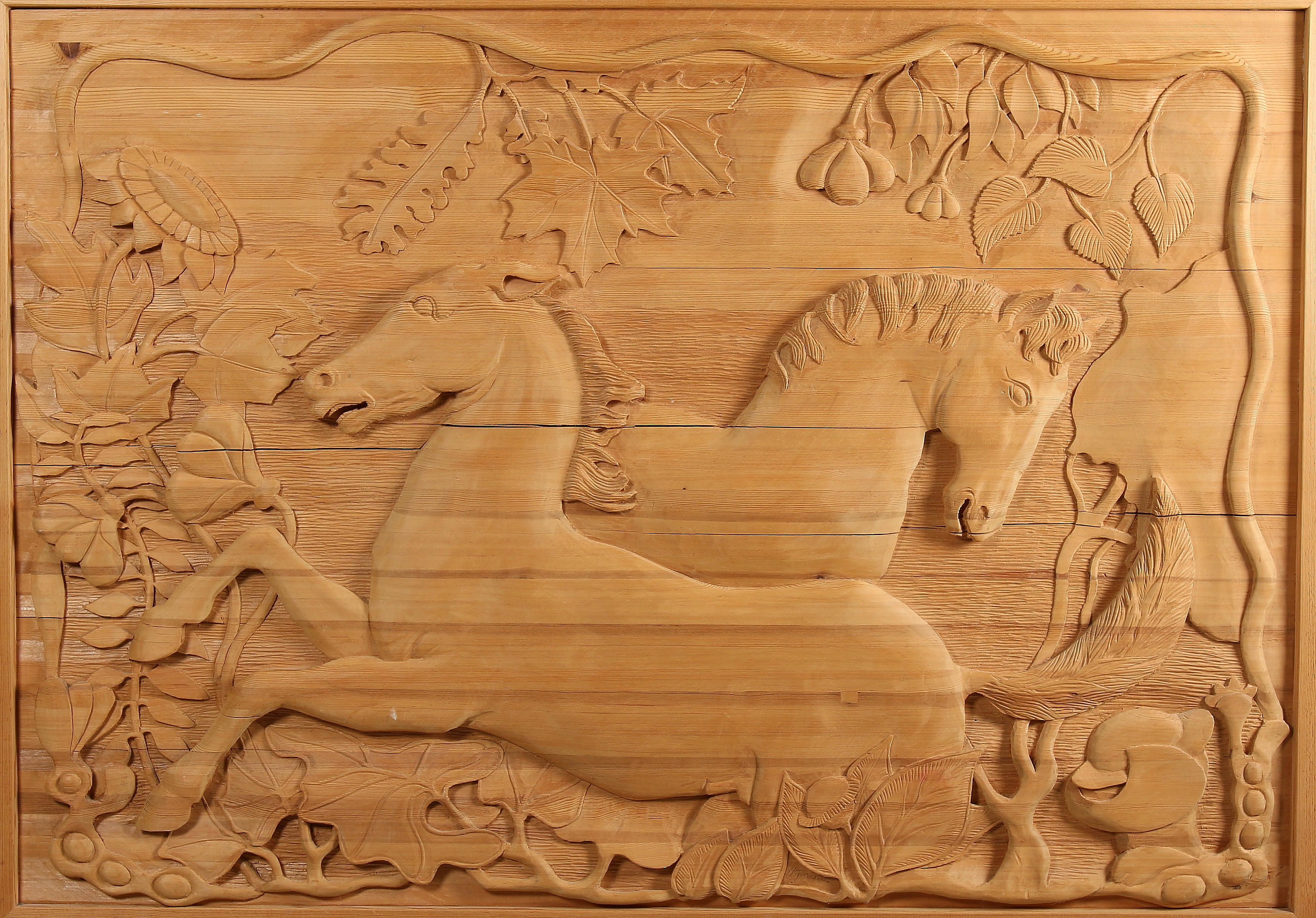 250856. RAGNAR BJERMKVIST. Hästar, relief, trä.