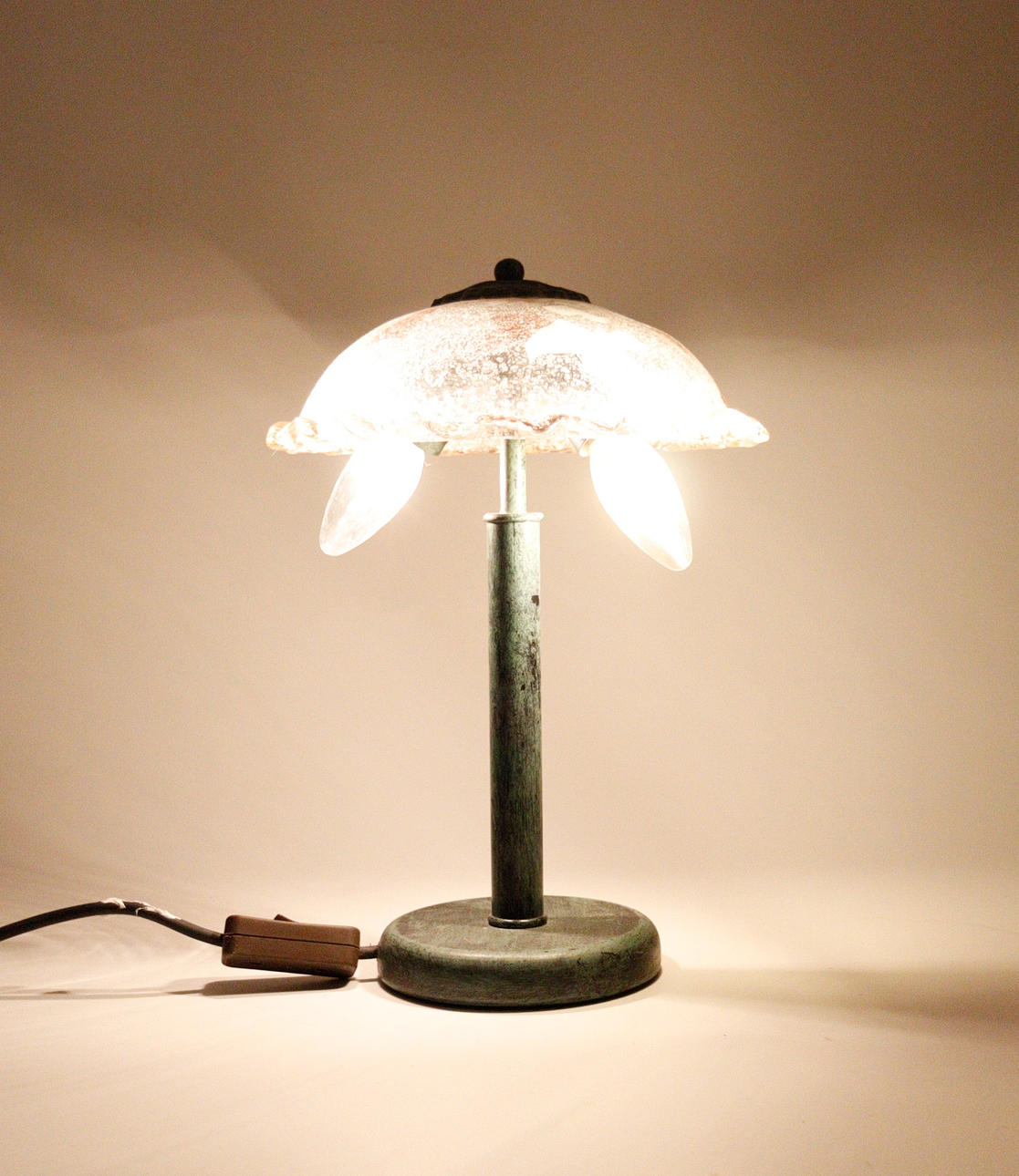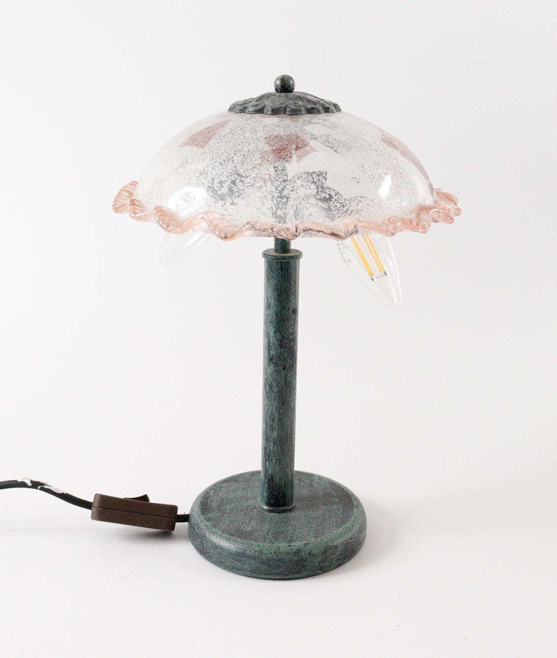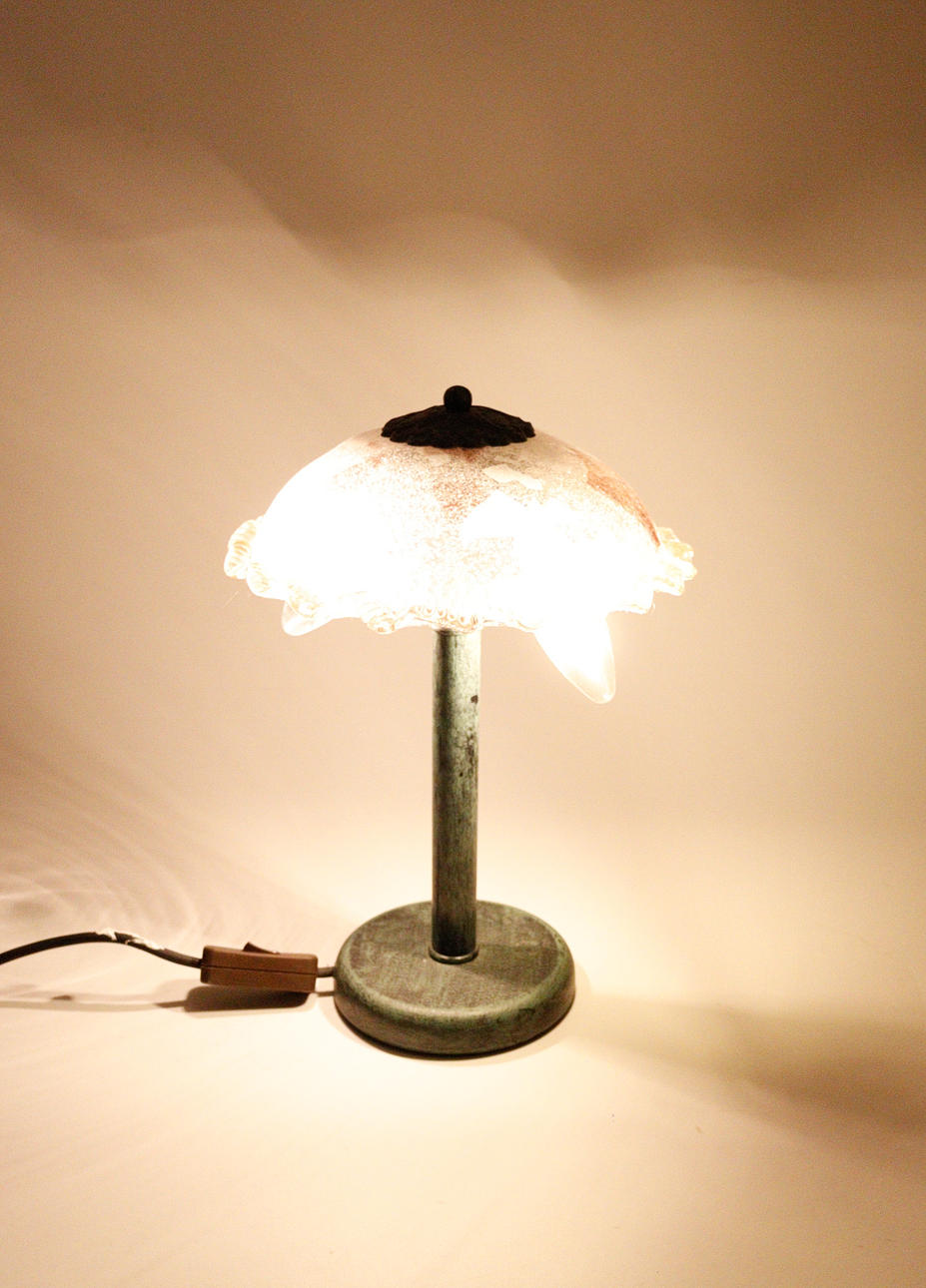 2 lampor/bordslampor i Tiffany-stil, plastkonstruktion, delvis gjord av glas, Mått ca.: h. 35/68 cm, diameter 25/41 cm.