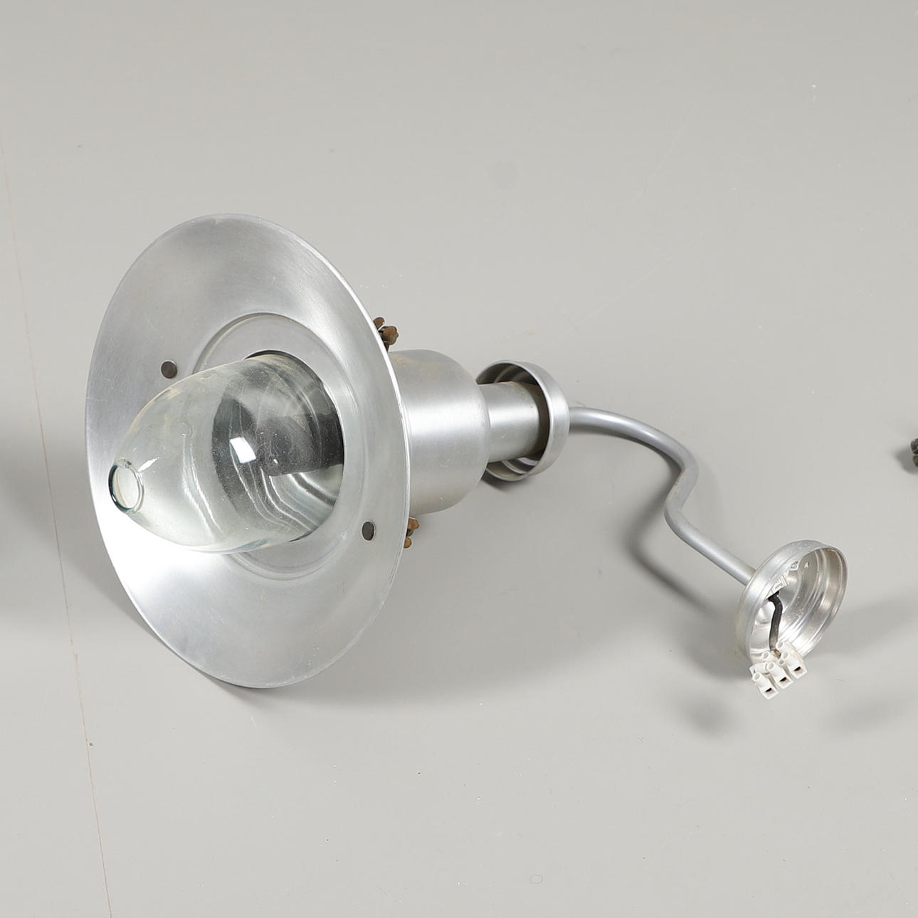 Två spotlights i industriell stil och två andra lampor i industriell stil, några namngivna. Största lampans diameter x Höjd, 30 cm x 44 cm.