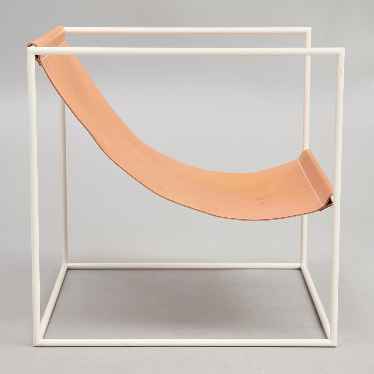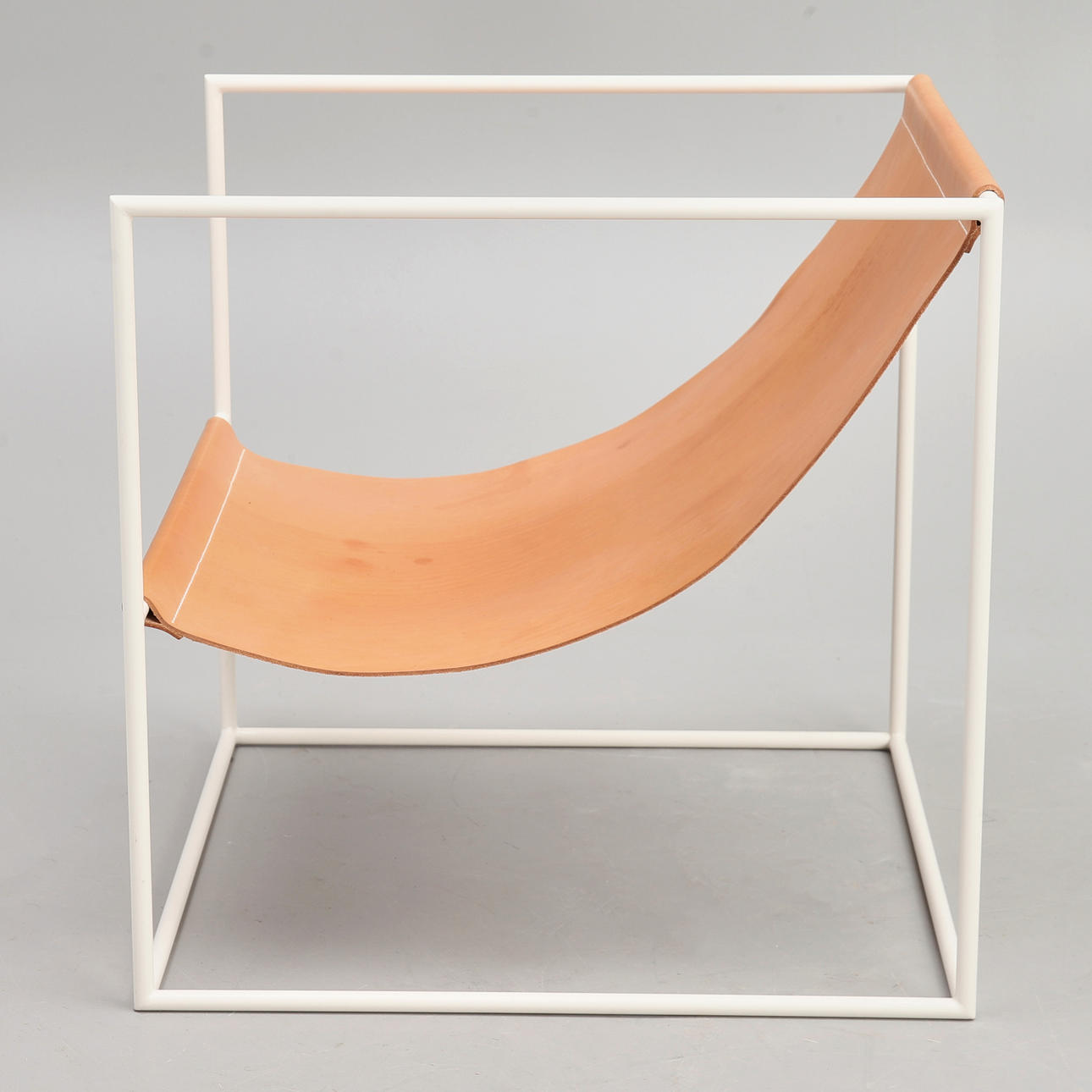 2516692. FÅTÖLJ, vitlackerat stålrör med läderklädsel, samtida design.