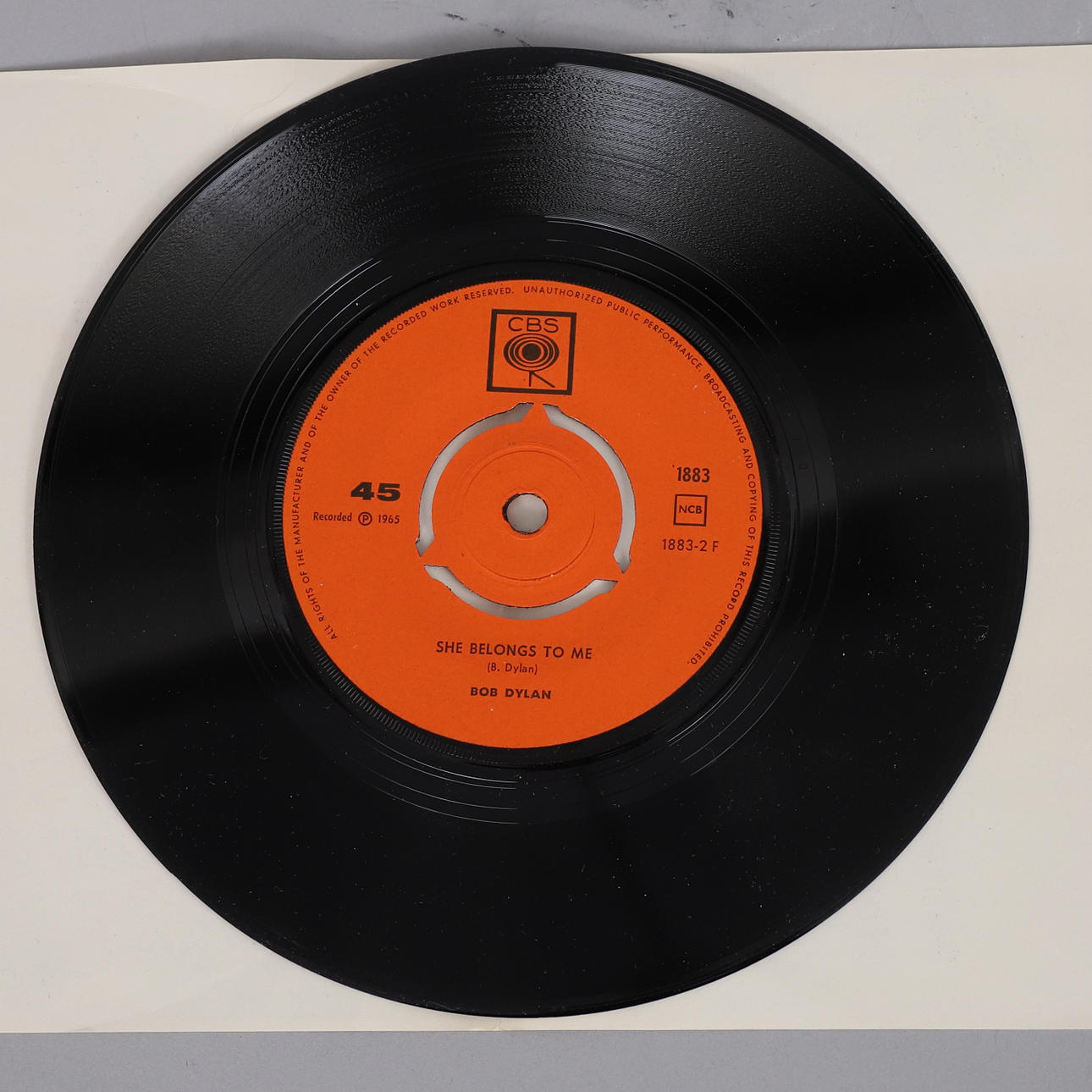 Bob Dylan, Subterranean Homesick Blues / She Belongs to Me, svensk press, feltryckt katalognummer CSB S 1883.