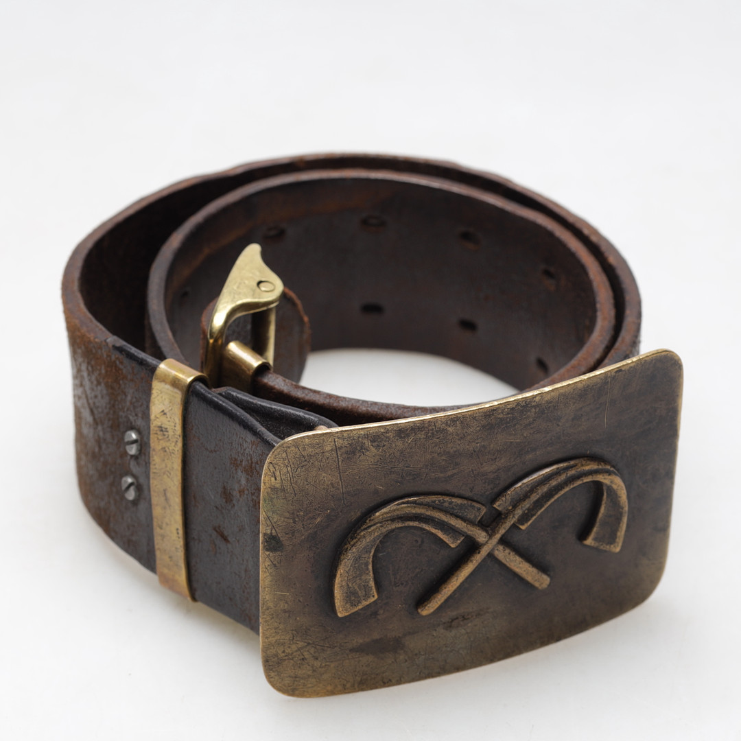 2518911. SOTARBÄLTE, läder & mässing, 1900-tal.