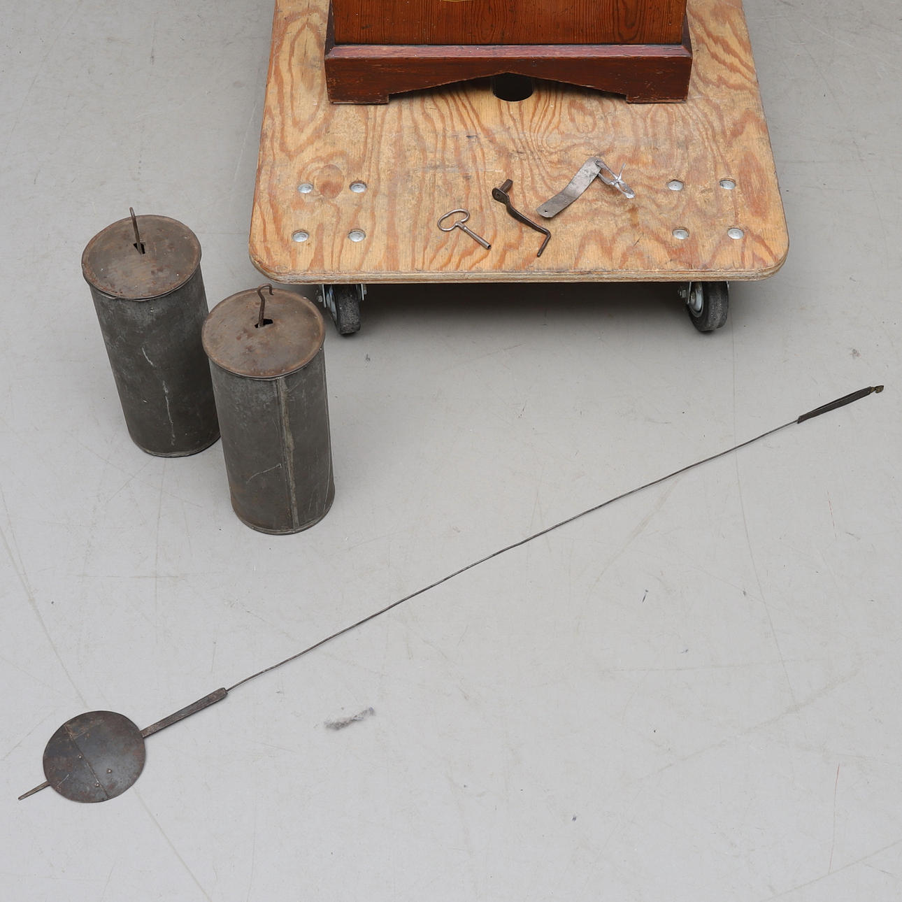Renoverat fodral med senare ytbehandling, slitage, repor och märken, färgstänk, maskhål, urtavla med krackelyr. Ej funktionstestad.