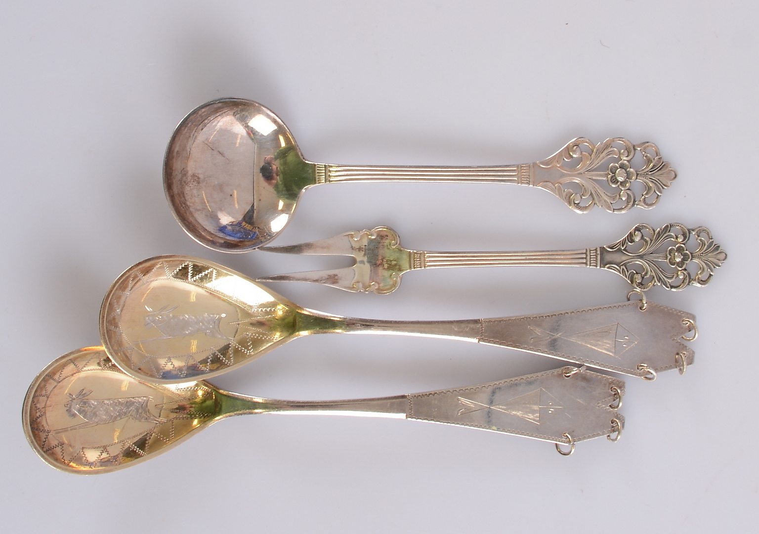 252293. KARL STENUDD. Lappskedar, silver 2 stycken.