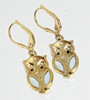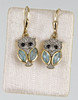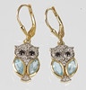 Örhängen är gjorda av 925 silver och guldpläterade, stiliserade ugglor är rörligt upphängda, set med blå topas, onyxband och zirkoniumoxid, längd 32 mm, bredd 10 mm, vikt 4,4 gram.