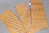 Etikettmärkta hyllplan. 3 hyllplan. Ett par lackerade metallgavlar. Längd ca. 78, bredd 30, höjd 75 cm.